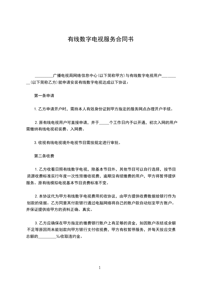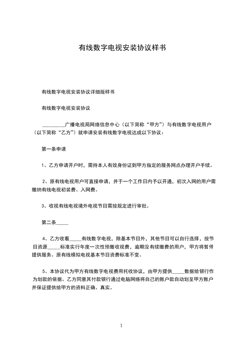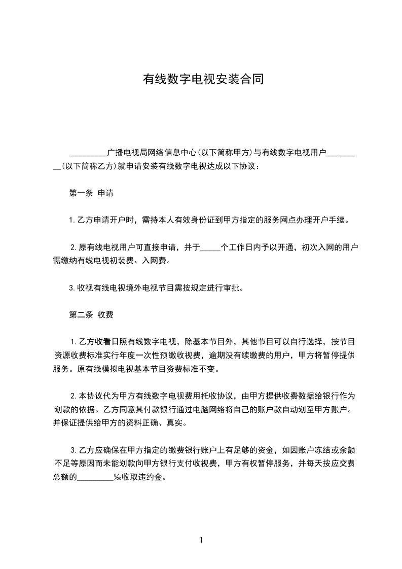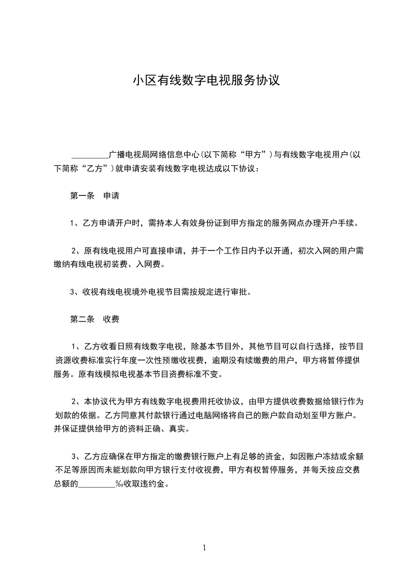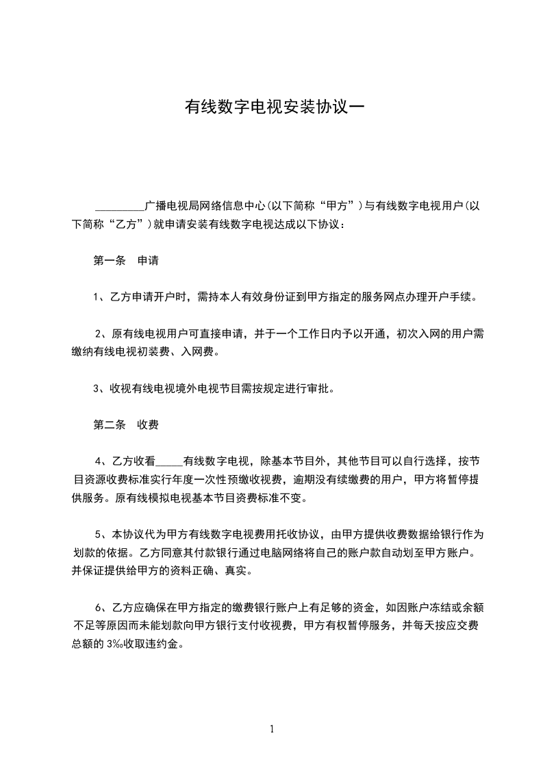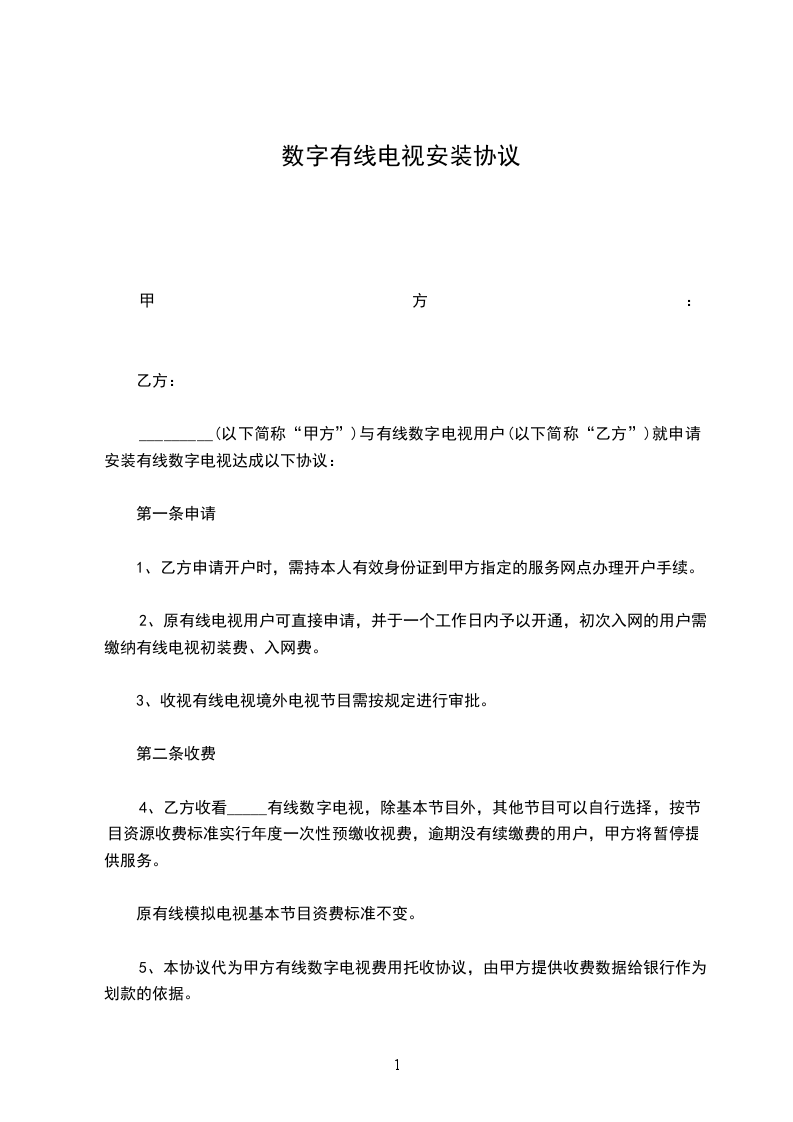 _________广播电视局网络信息中心(以下简称“甲方”)与有线数字电视用户(以下简称“乙方”)就申请安装有线数字电视达成以下协议: