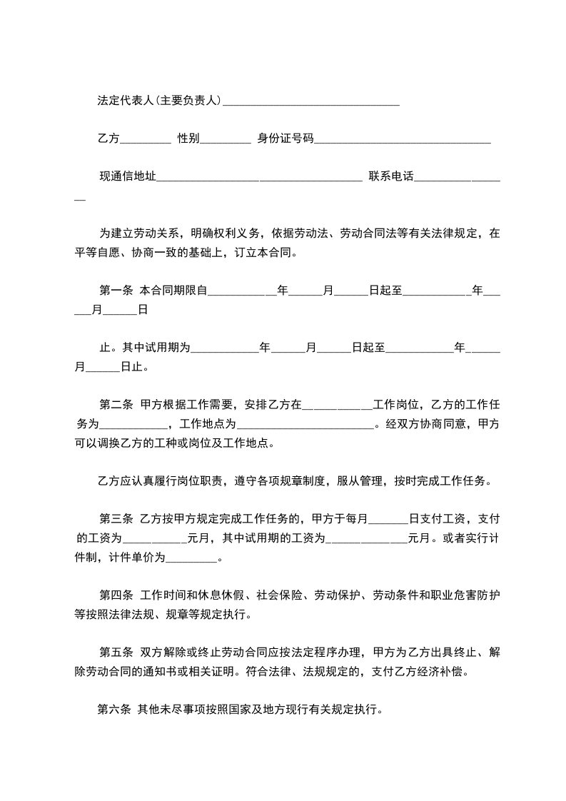 第二条 甲方根据工作需要,安排乙方在____________工作岗位,乙方的工作任务为____________,工作地点为________________________。经双方协商同意,甲方可以调换乙方的工种或岗位及工作地点。