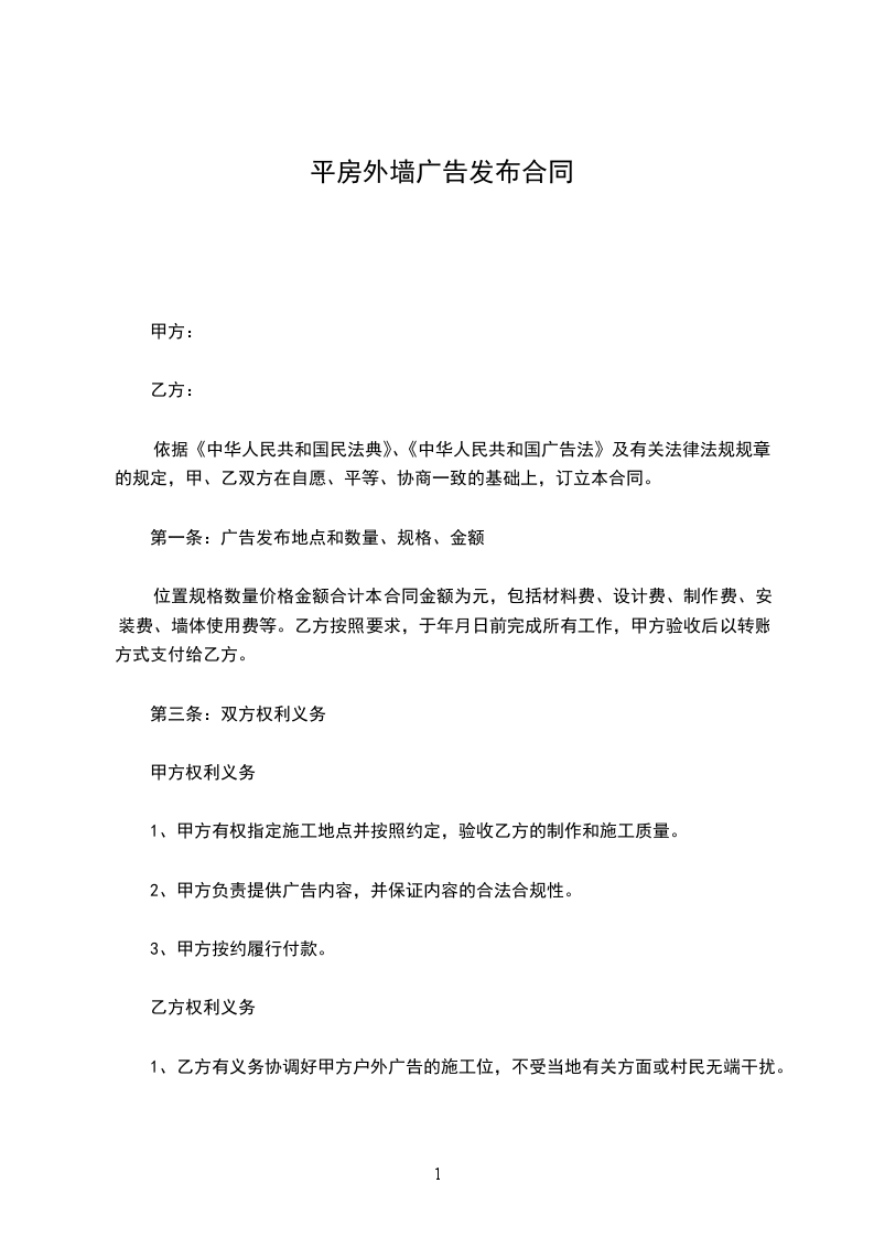 一、甲方受小区授权,拥有对物业外墙招租的权利。