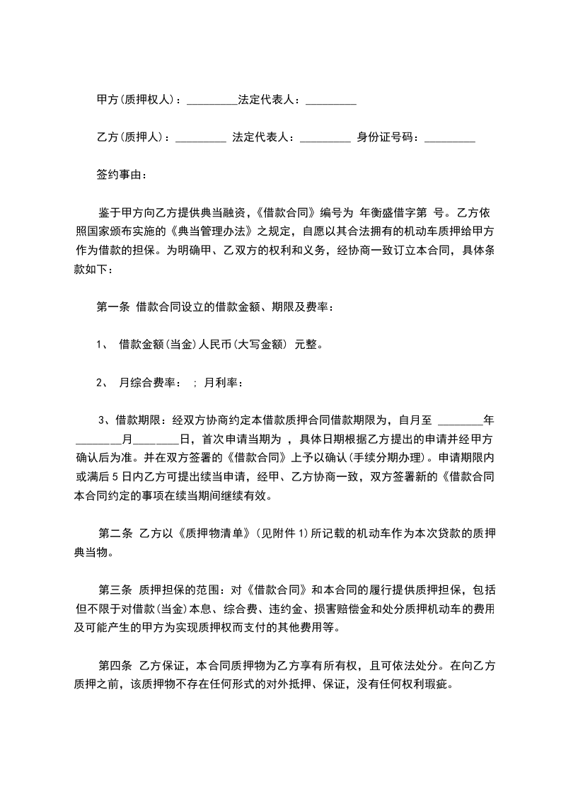 甲方因资金周转困难,自愿将其具有所有权并有权处置的机动车做质押,向乙方申请借款;为了维护双方的权利和义务,依照我国的有关法律规定,经双方协商,订立本合同,并共同遵守以下条款: