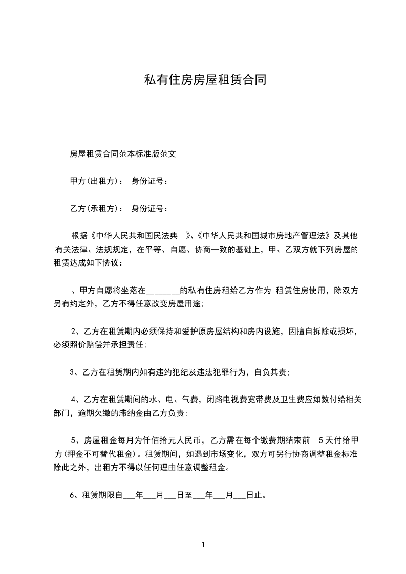 甲方(出租方): 身份证号: