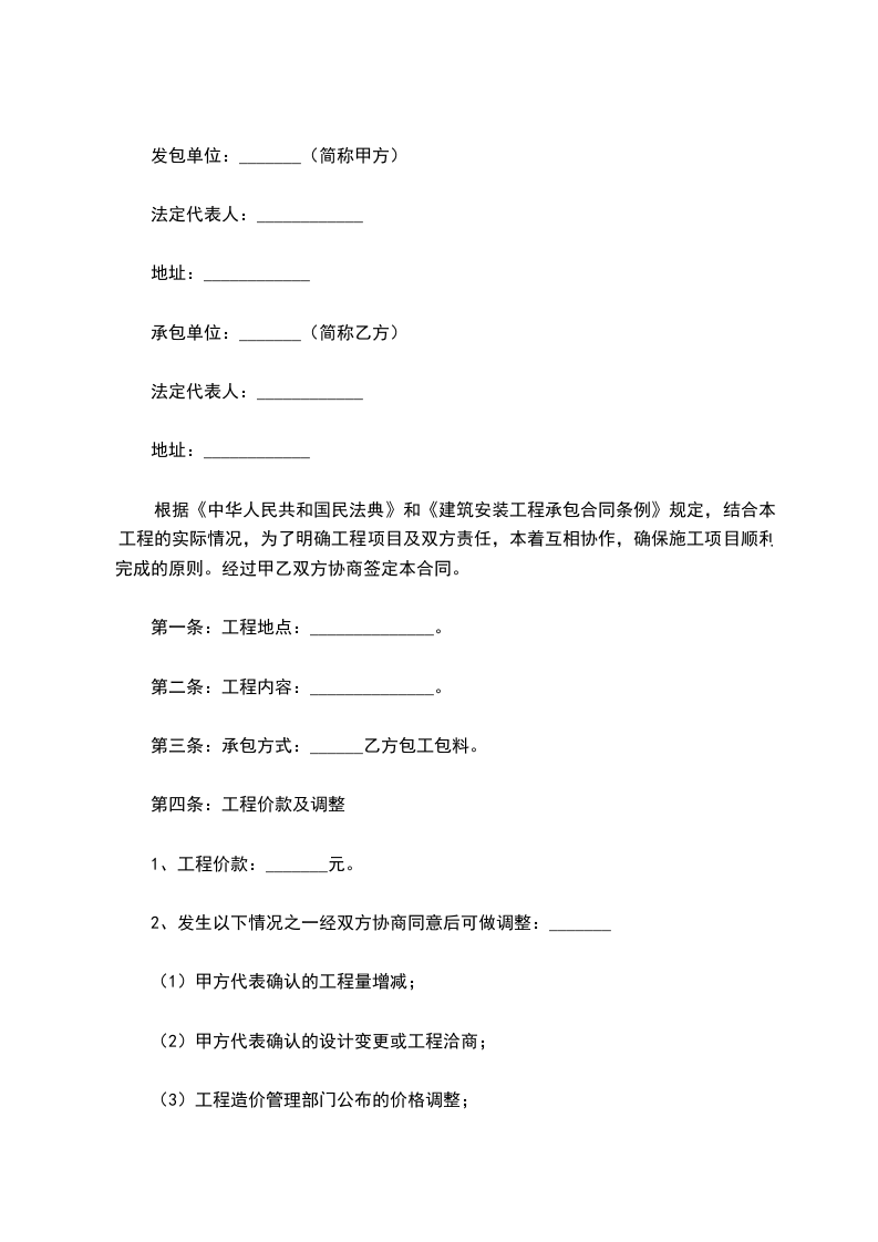 6.本合同一式_________份。其中正本贰份,双方各执壹份,副本_________份,发包人执_________份,承包人执_________份,其余副本由发包人分送有关单位。