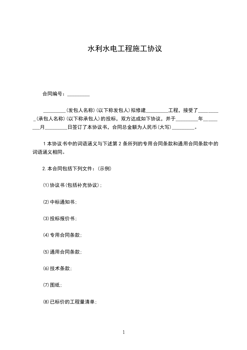 1本协议书中的词语涵义与下述第2条所列的专用合同条款和通用合同条款中的词语涵义相同。