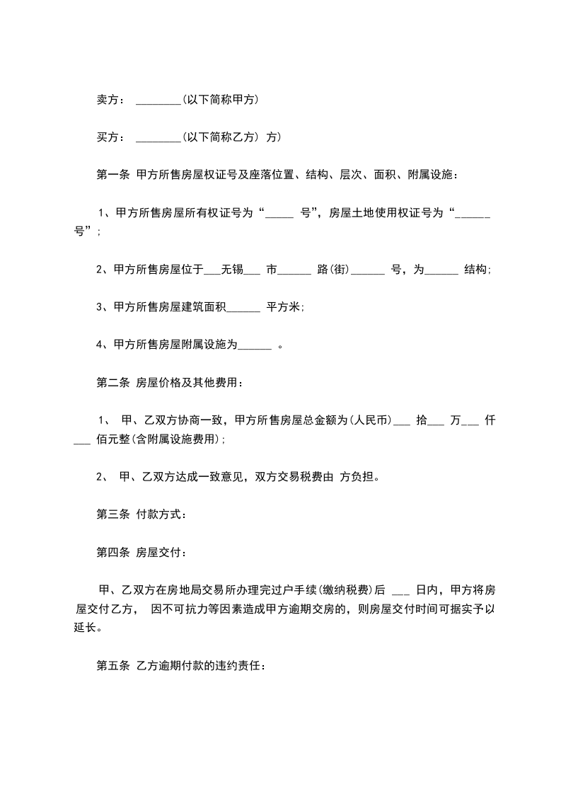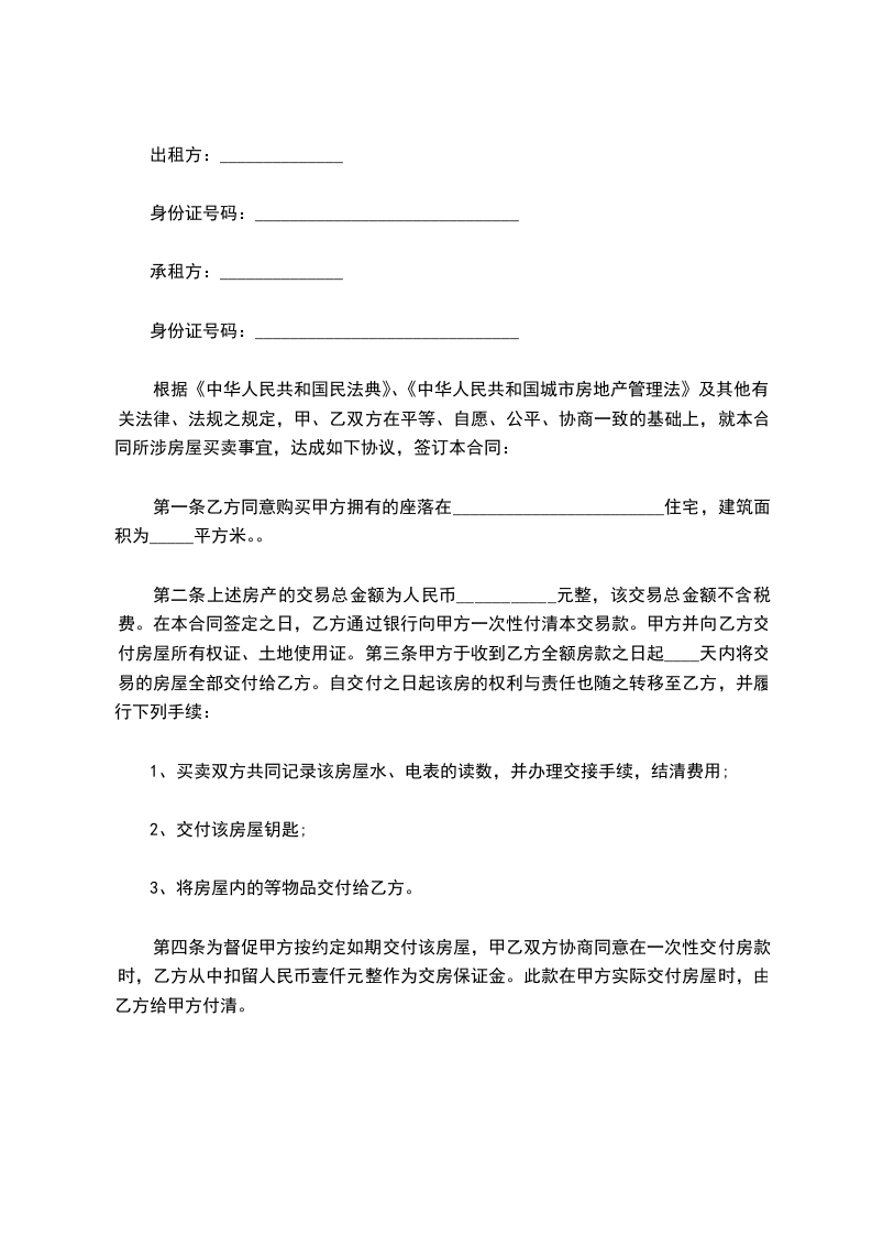甲方应于本合同生效之日起_____日内,将该房屋交付给乙方。