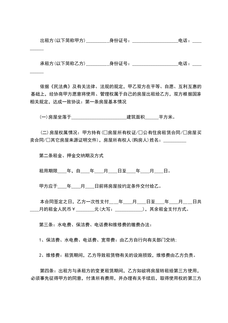 该房屋用途为____________________。除双方另有约定外,乙方不得任意改变房屋用途。