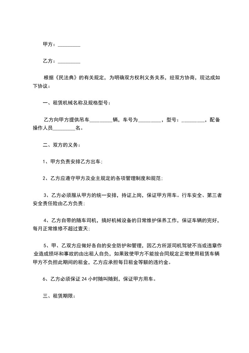 (2)在租赁期间,机械驾驶员必须服从甲方管理人员安排,如不服从,甲方有权责令停工或终止协议。