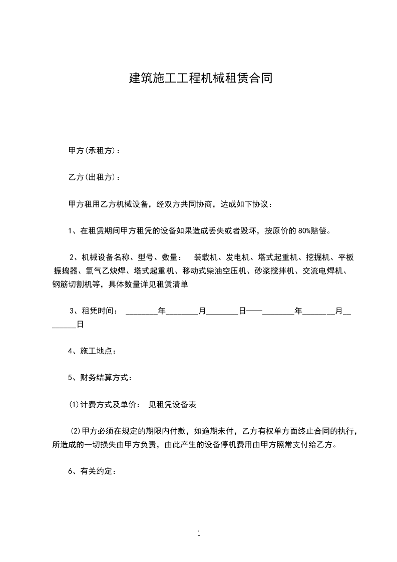 1、在租赁期间甲方租凭的设备如果造成丢失或者毁坏,按原价的80%赔偿。