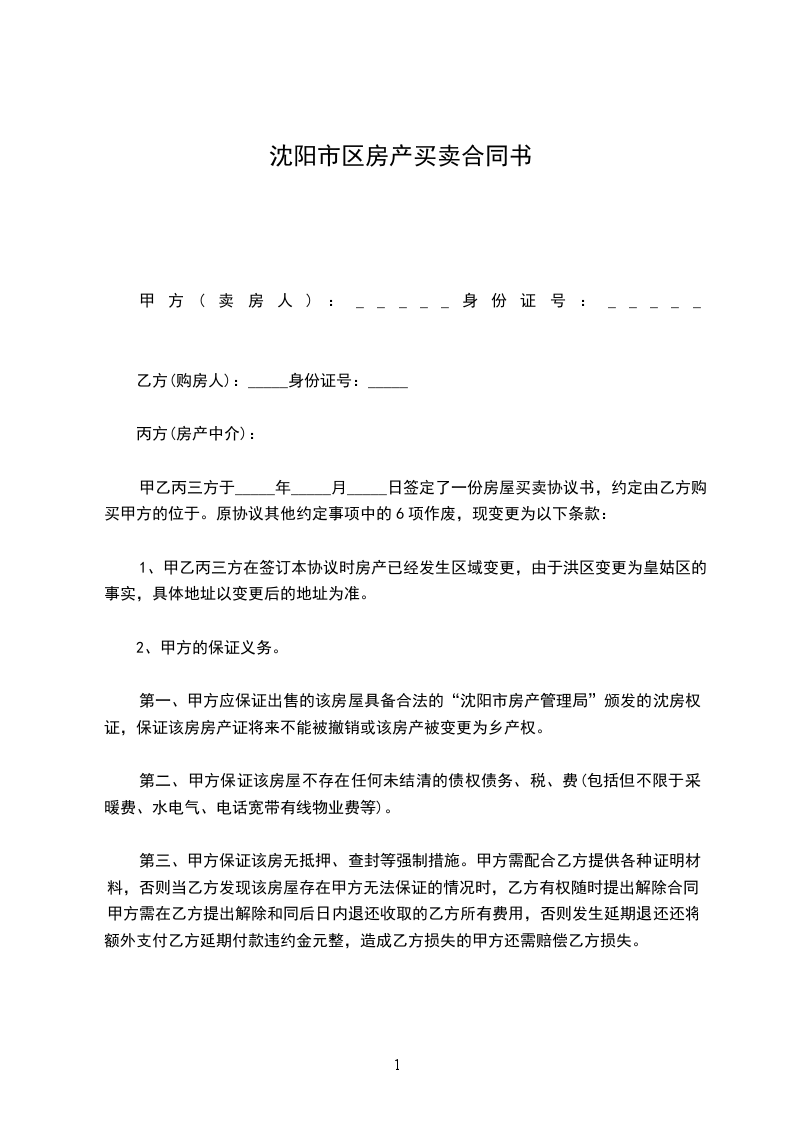 1、甲乙丙三方在签订本协议时房产已经发生区域变更,由于洪区变更为皇姑区的事实,具体地址以变更后的地址为准。