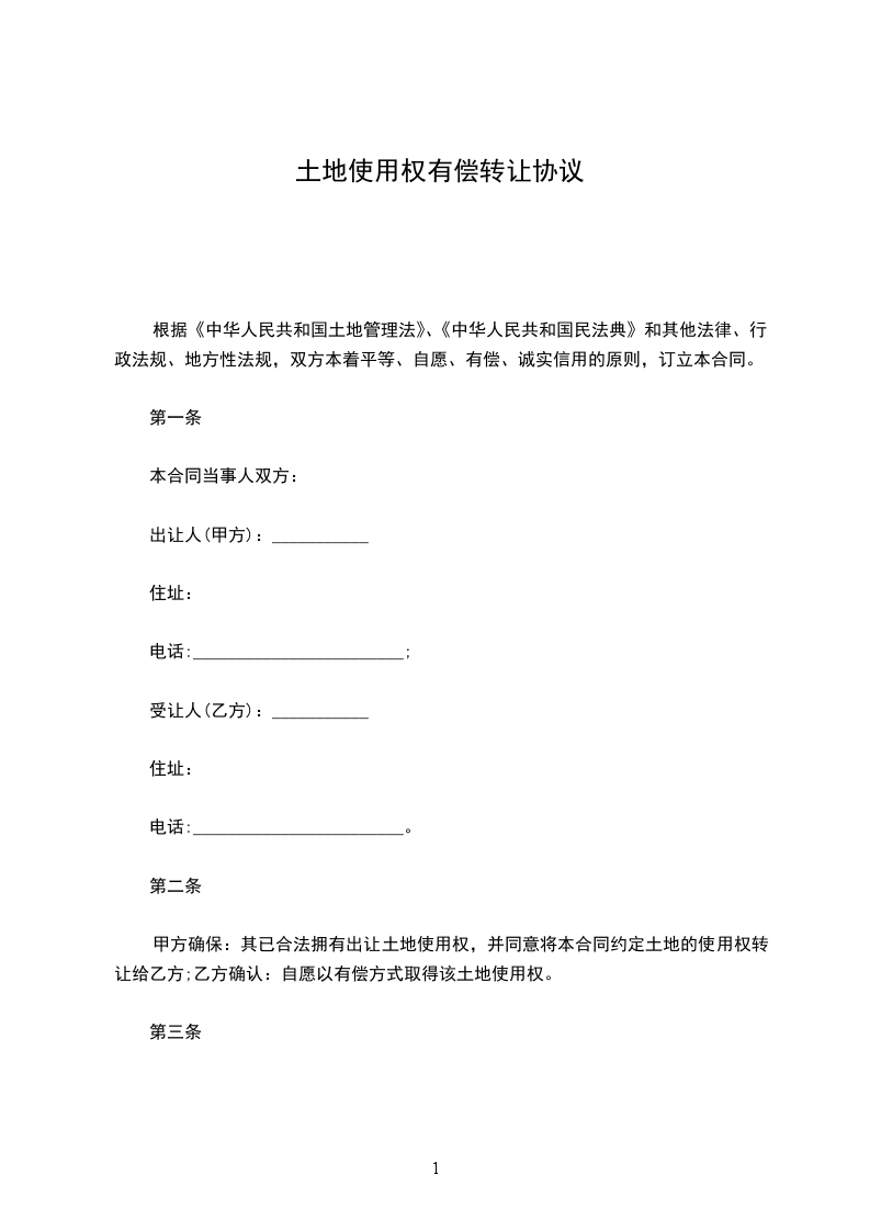 根据《中华人民共和国土地管理法》、《中华人民共和国民法典》和其他法律、行政法规、地方性法规,双方本着平等、自愿、有偿、诚实信用的原则,订立本合同。