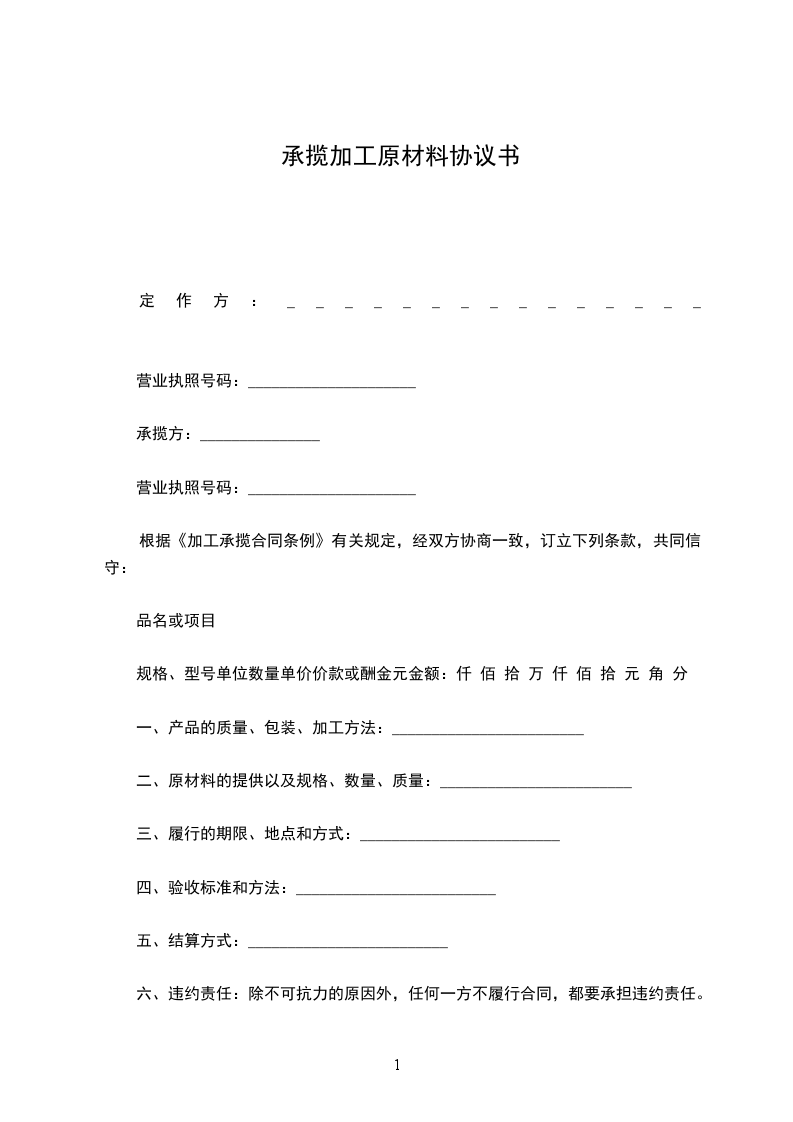 定作人委托承揽人加工____________,经双方充分协商,特订立本合同,以便共同遵守。