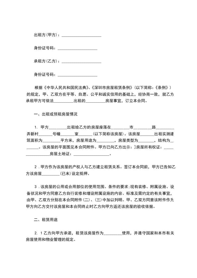 根据《中华人民共和国民法典》、《深圳市房屋租赁条例》(以下简称:《条例》)的规定,甲、乙双方在平等、自愿、公平和诚实信用的基础上,经协商一致,就乙方承租甲方可依法__________出租的__________房屋事宜,订立本合同。