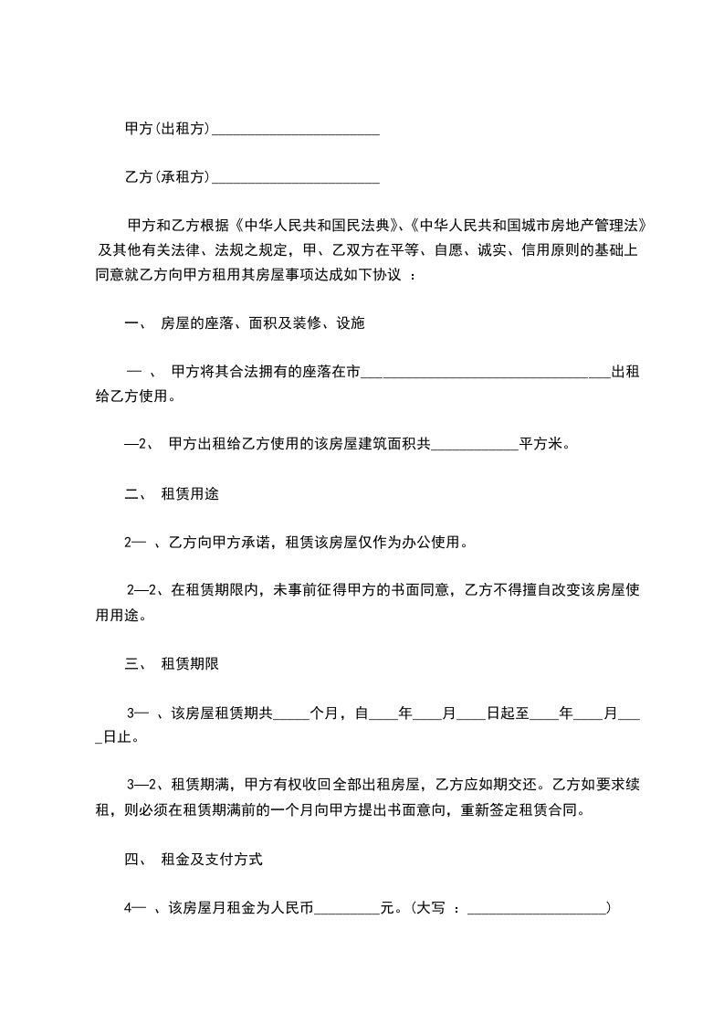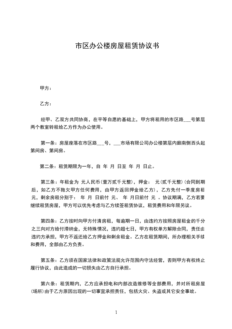 经甲、乙双方共同协商,在平等自愿的基础上,甲方将租用的市区路___号第层两个教室转租给乙方作为办公使用。