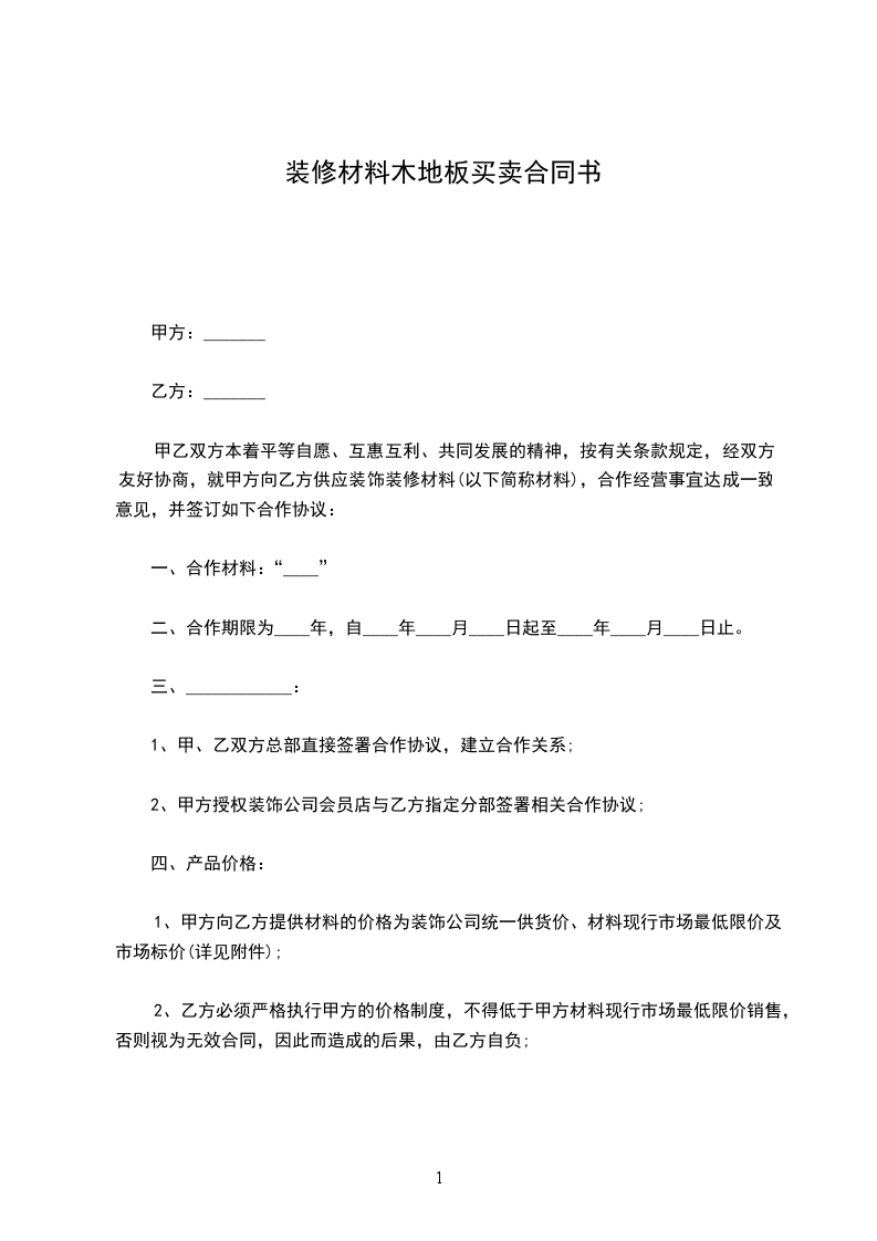 装修材料木地板买卖合同书