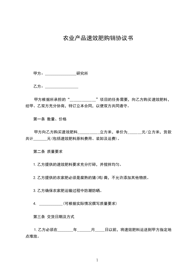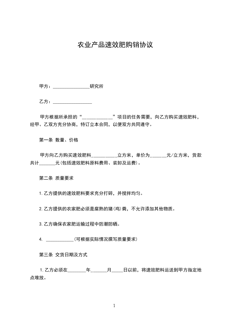 甲方根据所承担的“_____________”项目的任务需要,向乙方购买速效肥料,经甲、乙双方充分协商,特订立本合同,以便双方共同遵守。