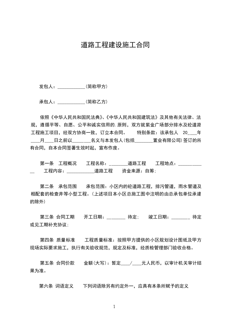 五、合同价款及支付:完工后根据实际竣工工程量结算(本合同第一条所列工程价款为综合单价,含主辅材料、人工、运输、管理费、税金、政策性文件规定、合同所包含的一切风险责任及可能发生的一切费用。