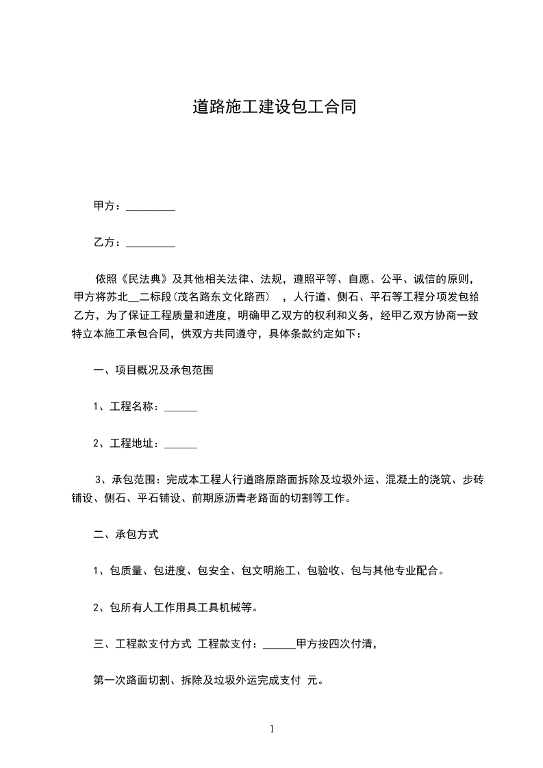 甲方(全称):__________________(发包方)
