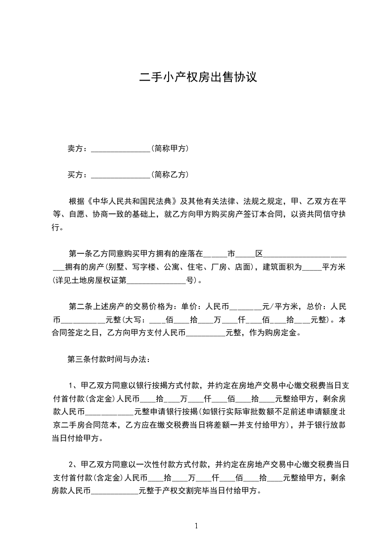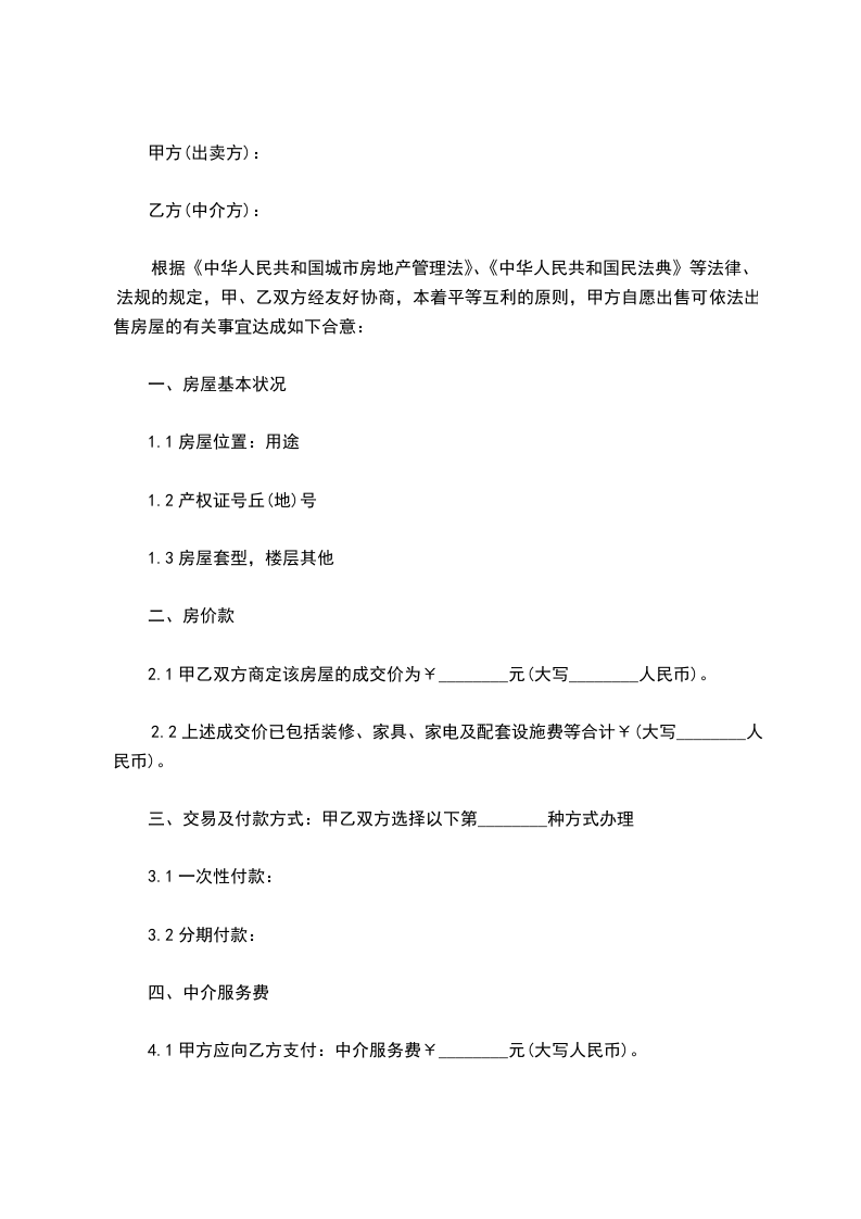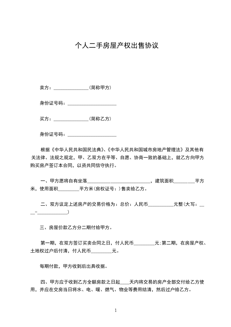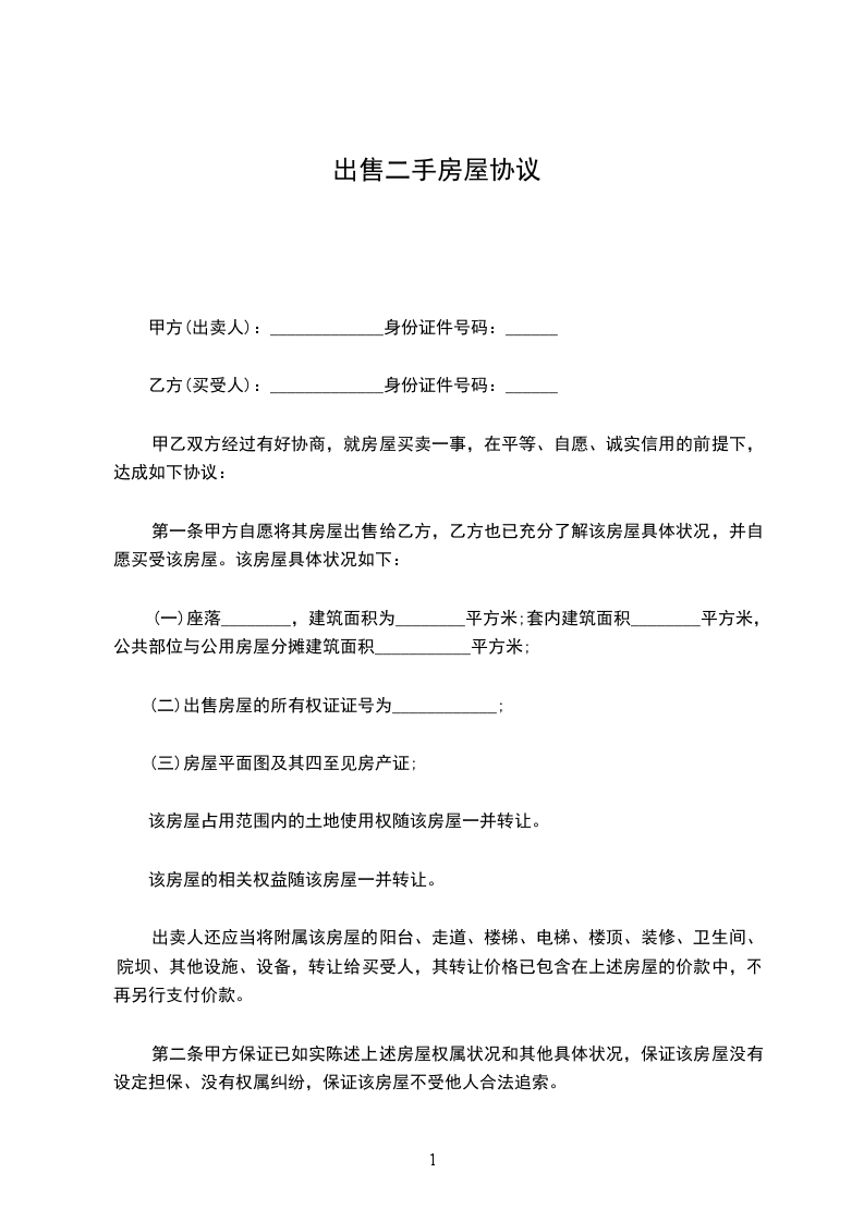 一、甲方愿将自有坐落___________________________,建筑面积_________平方米,使用面积_________平方米(房权证号:)售卖给乙方。