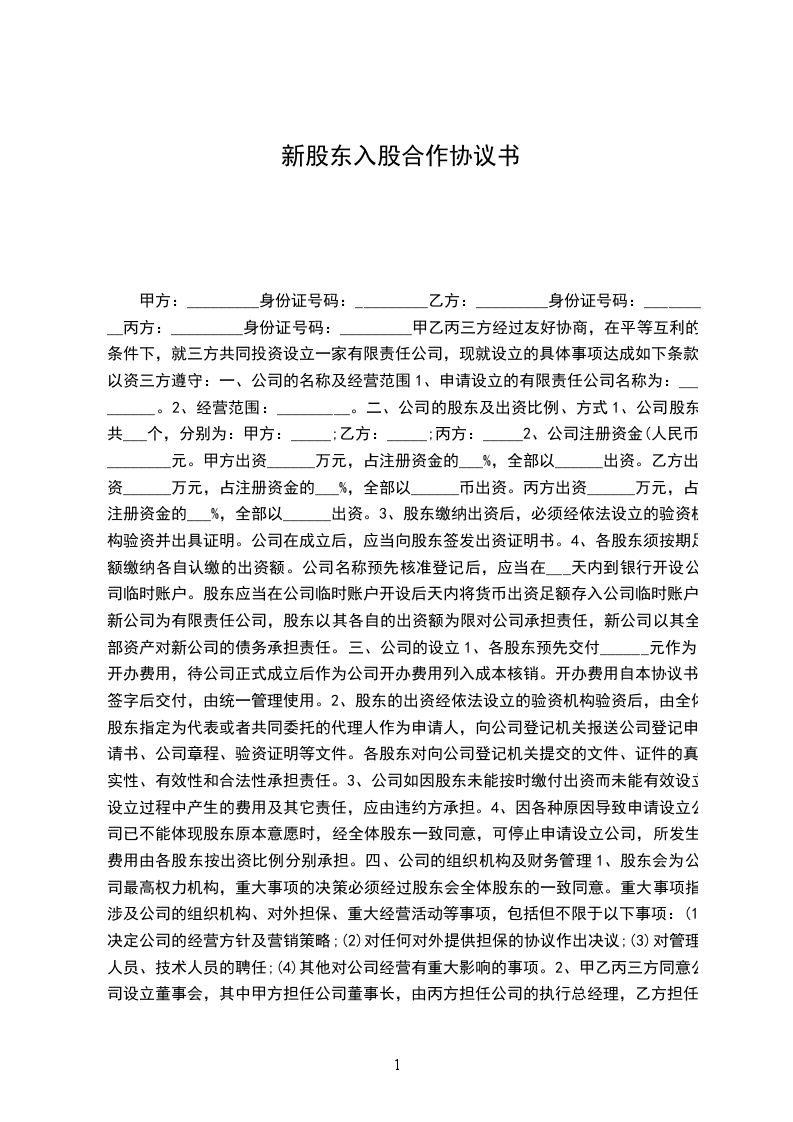 经上述股东各方充分协商,就投资设立(下称公司)事宜,达成如下协议:
