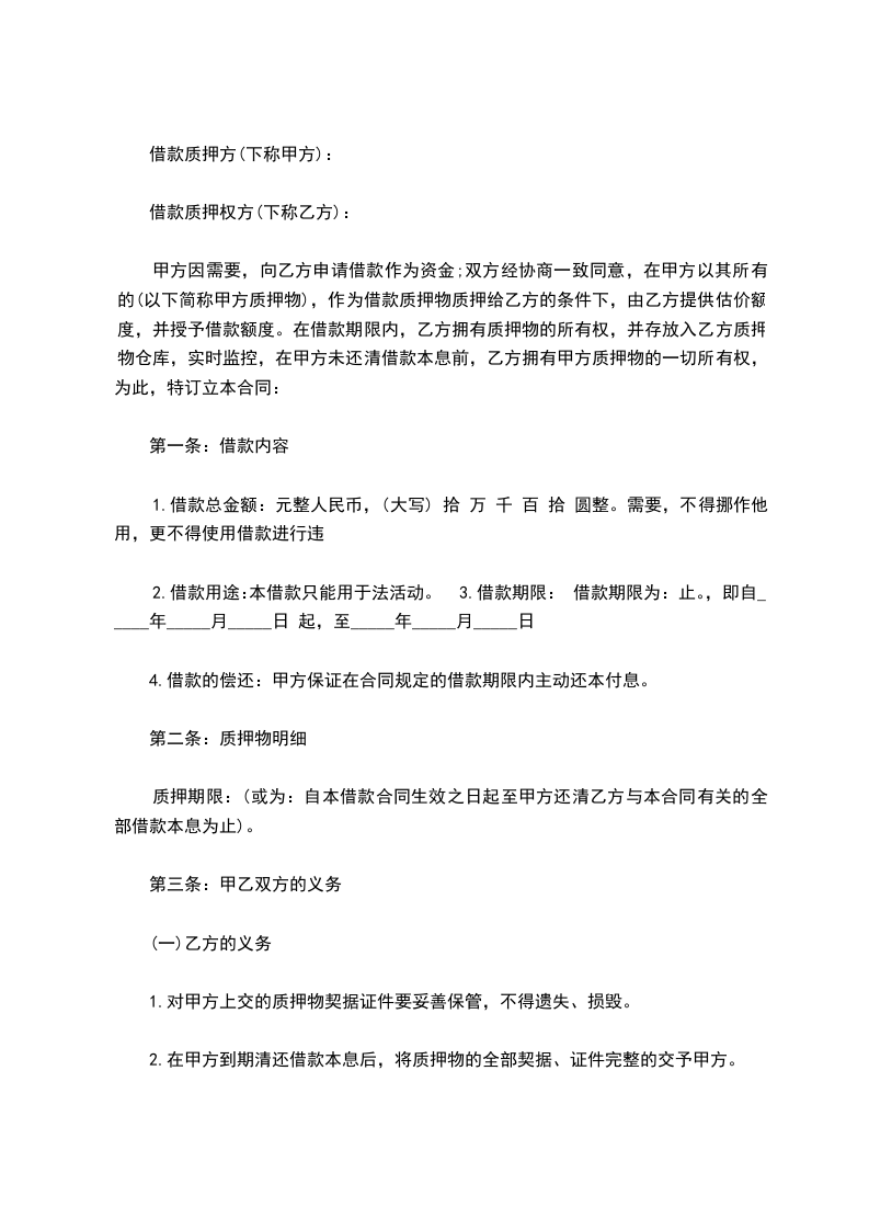 1、甲方到期不能偿还乙方的借款,乙方有权对质押物 进行处理,甲方到期如数偿还了乙方的借款及利息,综合费用时,乙方将质押物 退还给甲方。