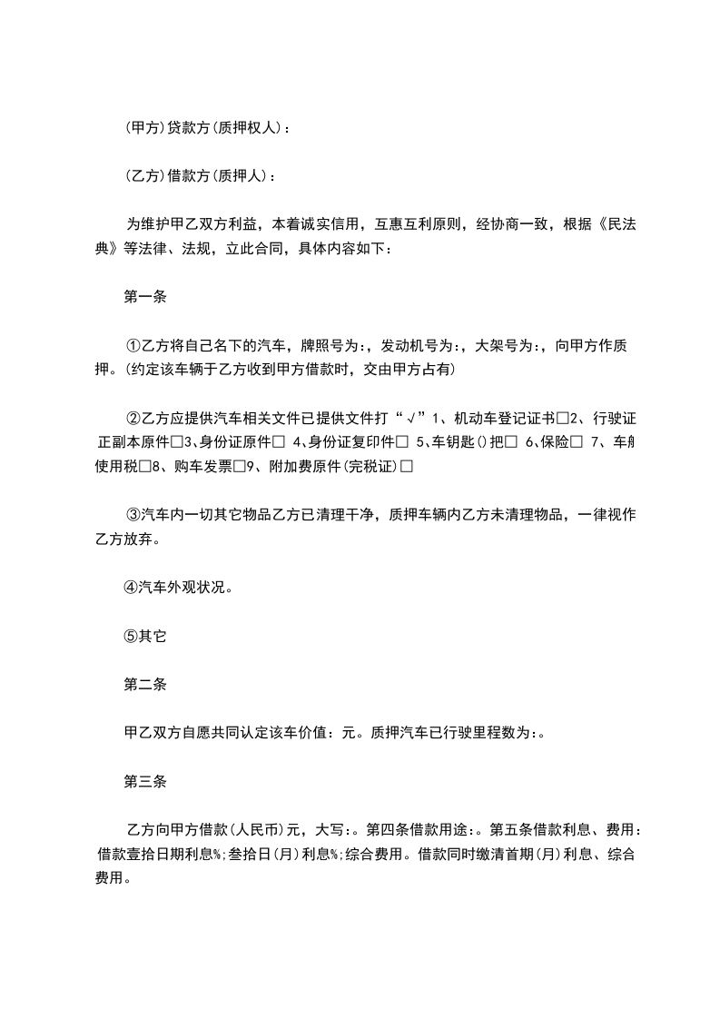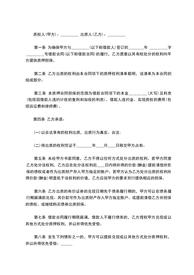 为维护甲乙双方利益,本着诚实信用,互惠互利原则,经协商一致,根据国务院颁发的《借款合同条例》《民法典》规定立此合同,就甲方向乙方借款一事特签订本 质押合同以作担保,具体内容如下: