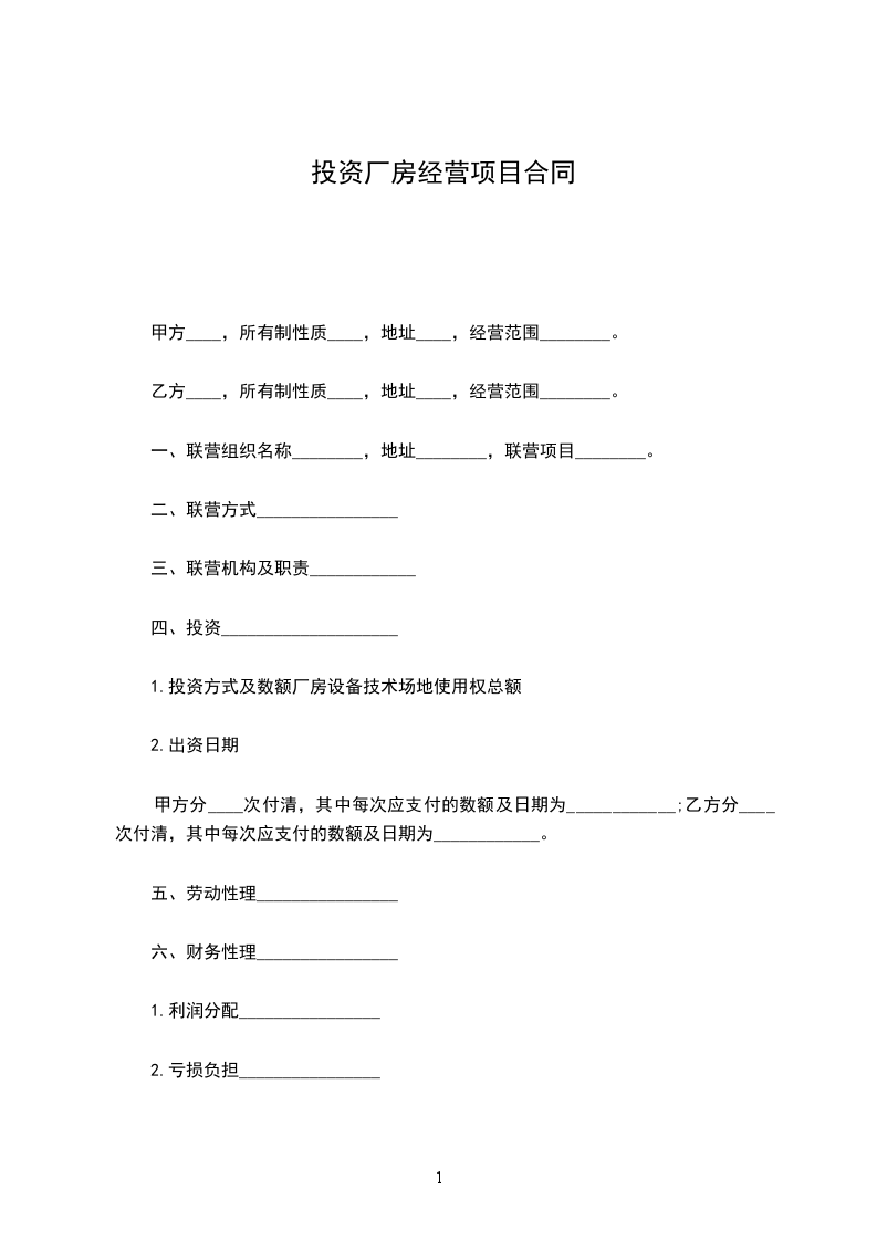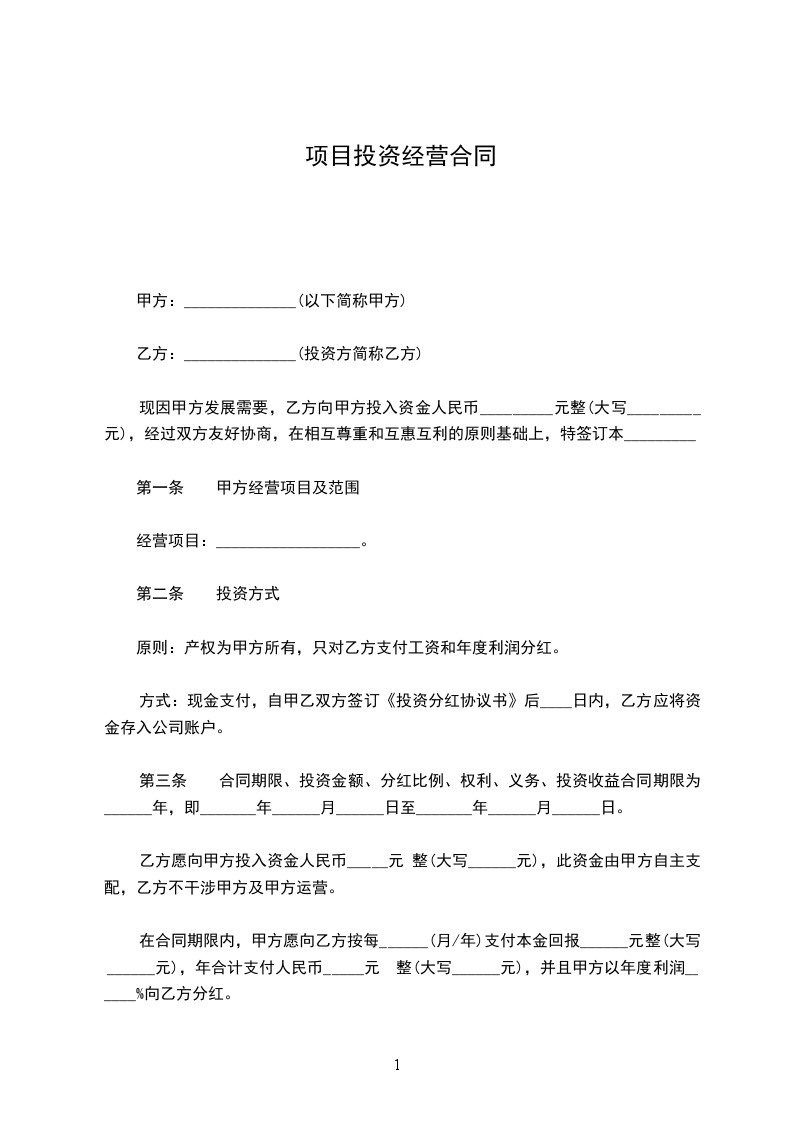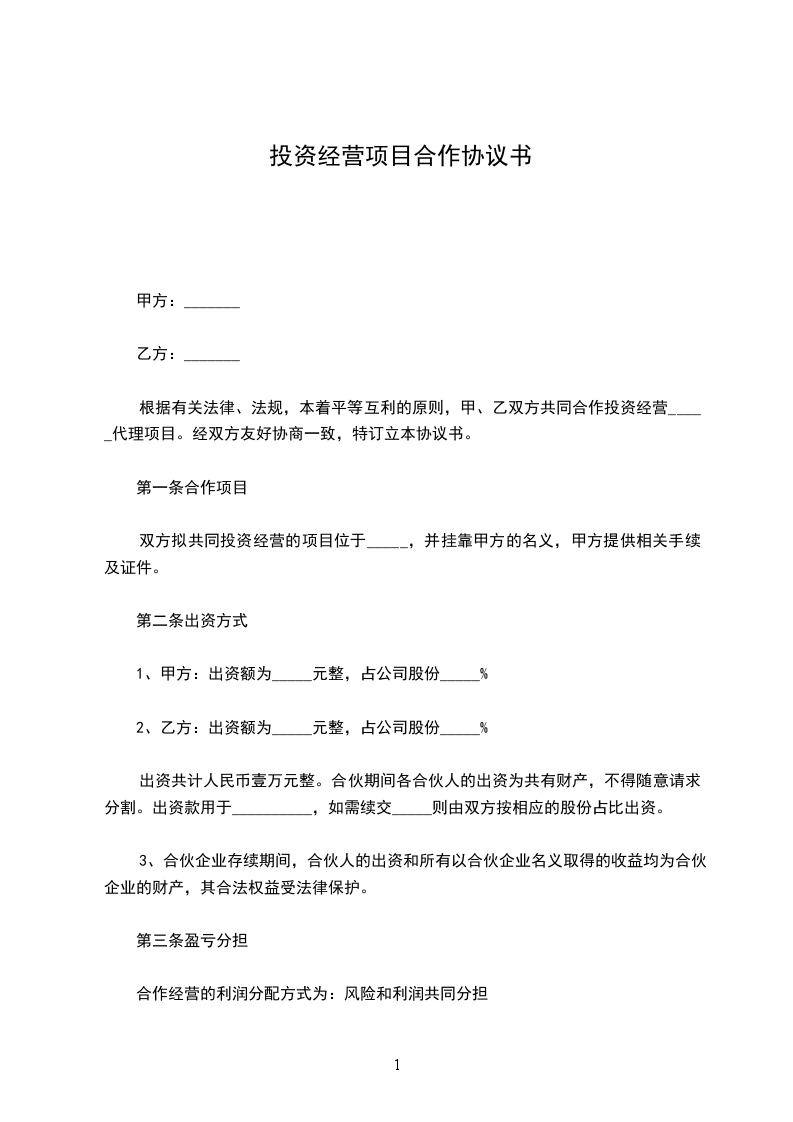 根据有关法律、法规,本着平等互利的原则,甲、乙双方共同合作投资经营_____代理项目。经双方友好协商一致,特订立本协议书。