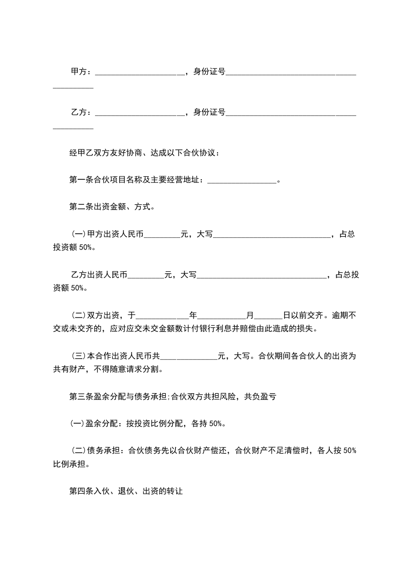 2、其他业务员人员由甲、乙双方共同商定委派或向社会招聘来确定。 第五条 合作人如退出经营需提前一个月告知其他合作人并经双方一致同意后,合作人方可以退出合作经营。