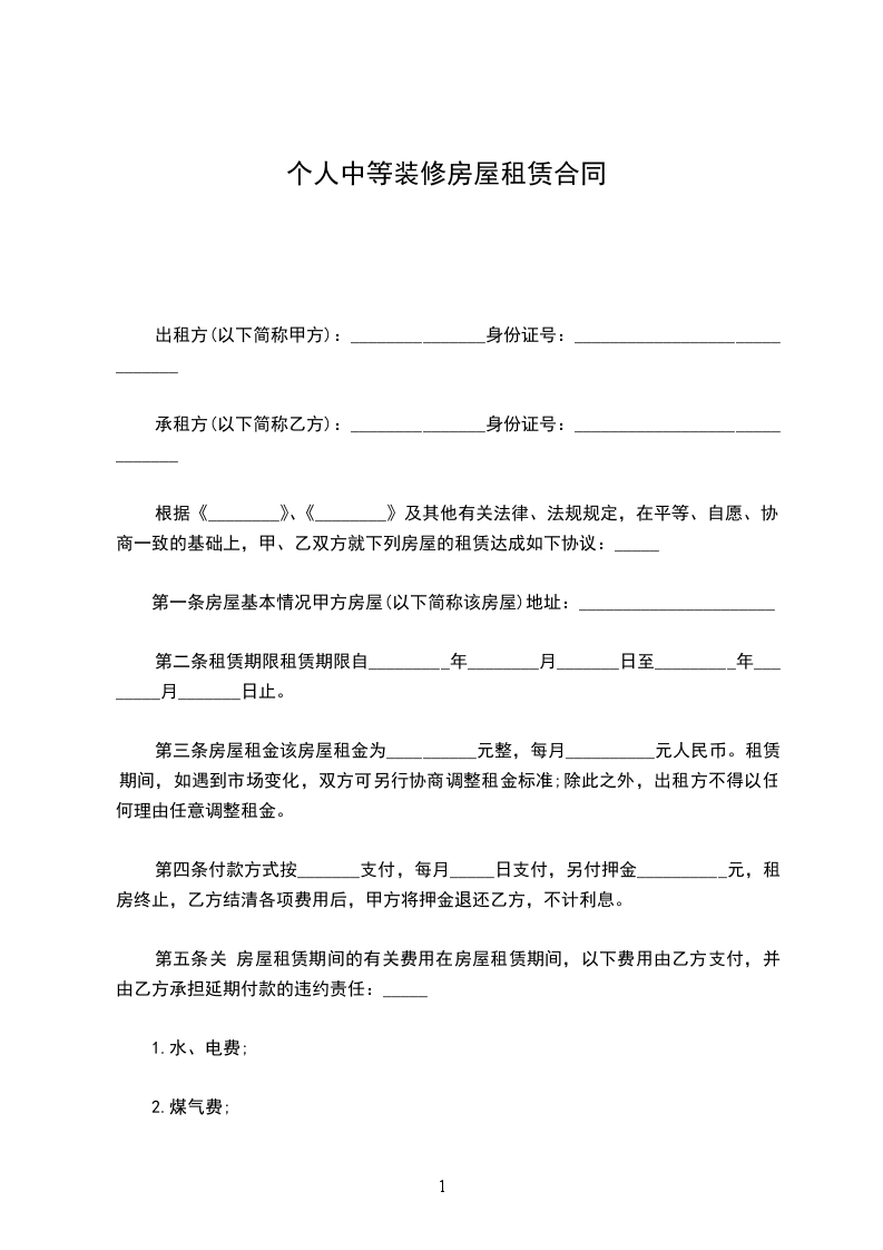 2. 水电费、煤气费:乙方每月自行向有关部门交纳;