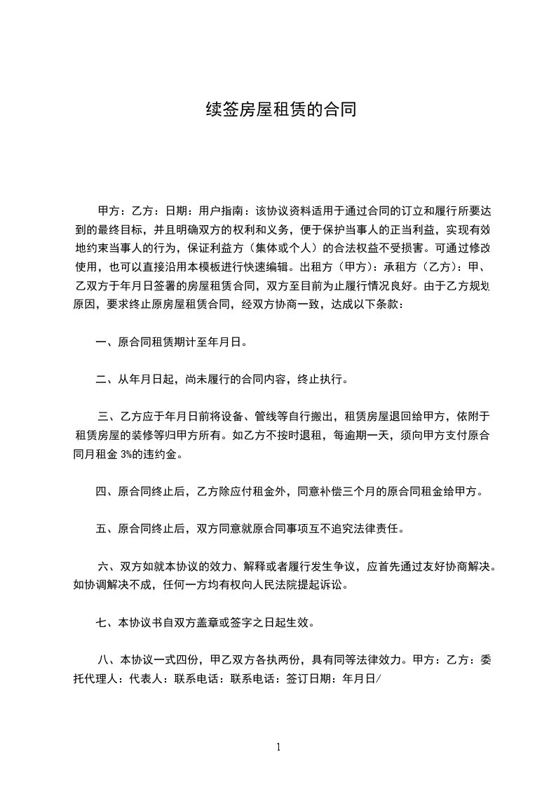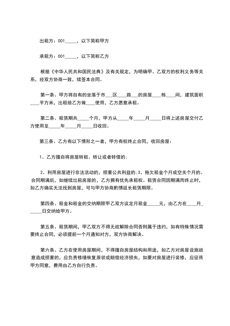第三条、租赁期满前,乙方要继续租赁的,应当在租赁期满1个月前通知甲方。 合同期满后,如继续出租房屋的,乙方拥有优先承租权。
