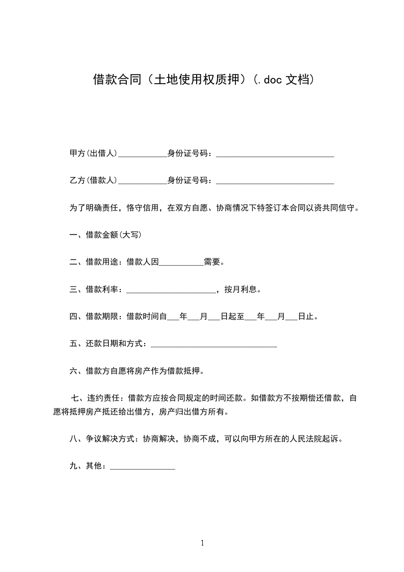 二、乙方同意用的土地使用权做该笔借款的质押,土地使用权证号为:使用权人为: