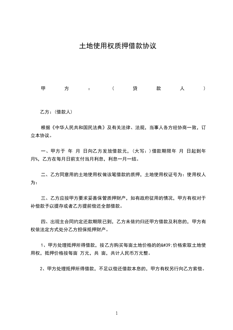 1、甲方处理抵押所得借款,按乙方购买每亩土地价格的的'价格索取土地使用权,抵押价格按每亩 万元,共 亩,共计人民币_____万元整。