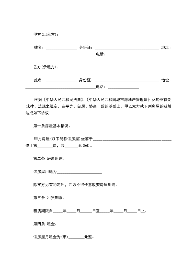 根据《中华人民共和民法典》、《中华人民共和国城市房地产管理法》及其他有关法律、法规之规定,在平等、自愿、协商一致的基础上,甲乙双方就下列房屋的租赁达成如下协议: