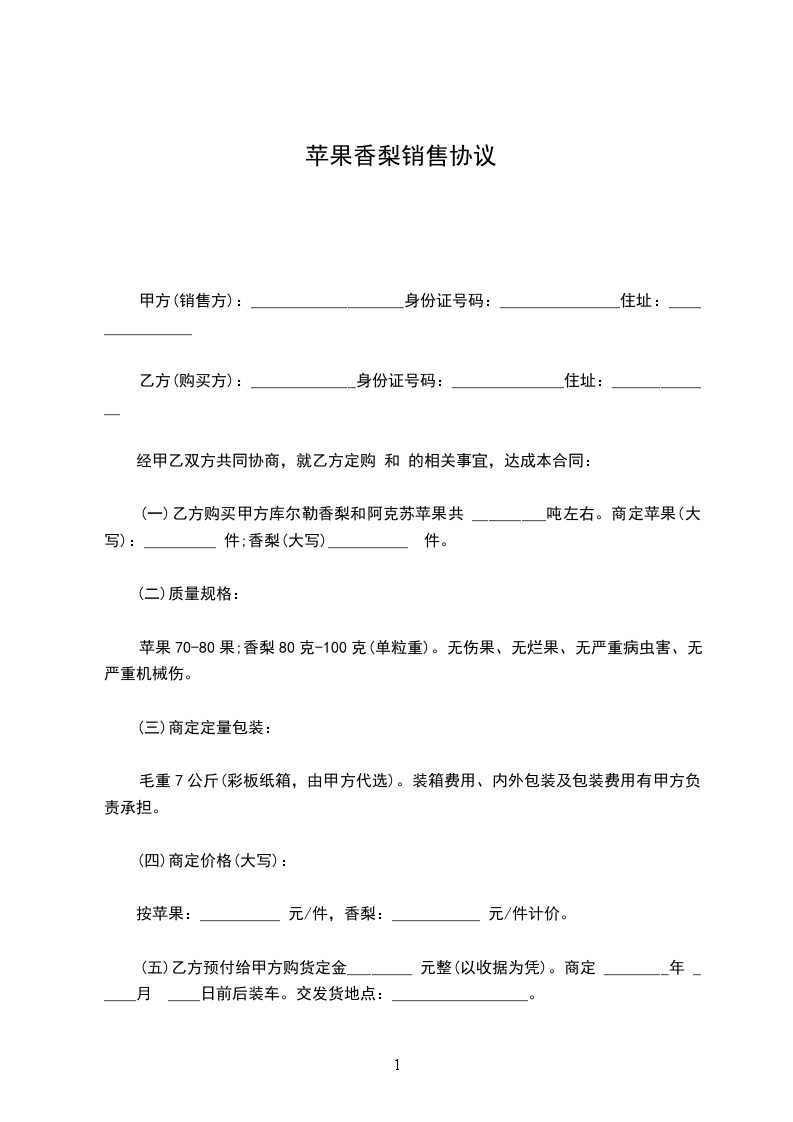 苹果香梨买卖协议书