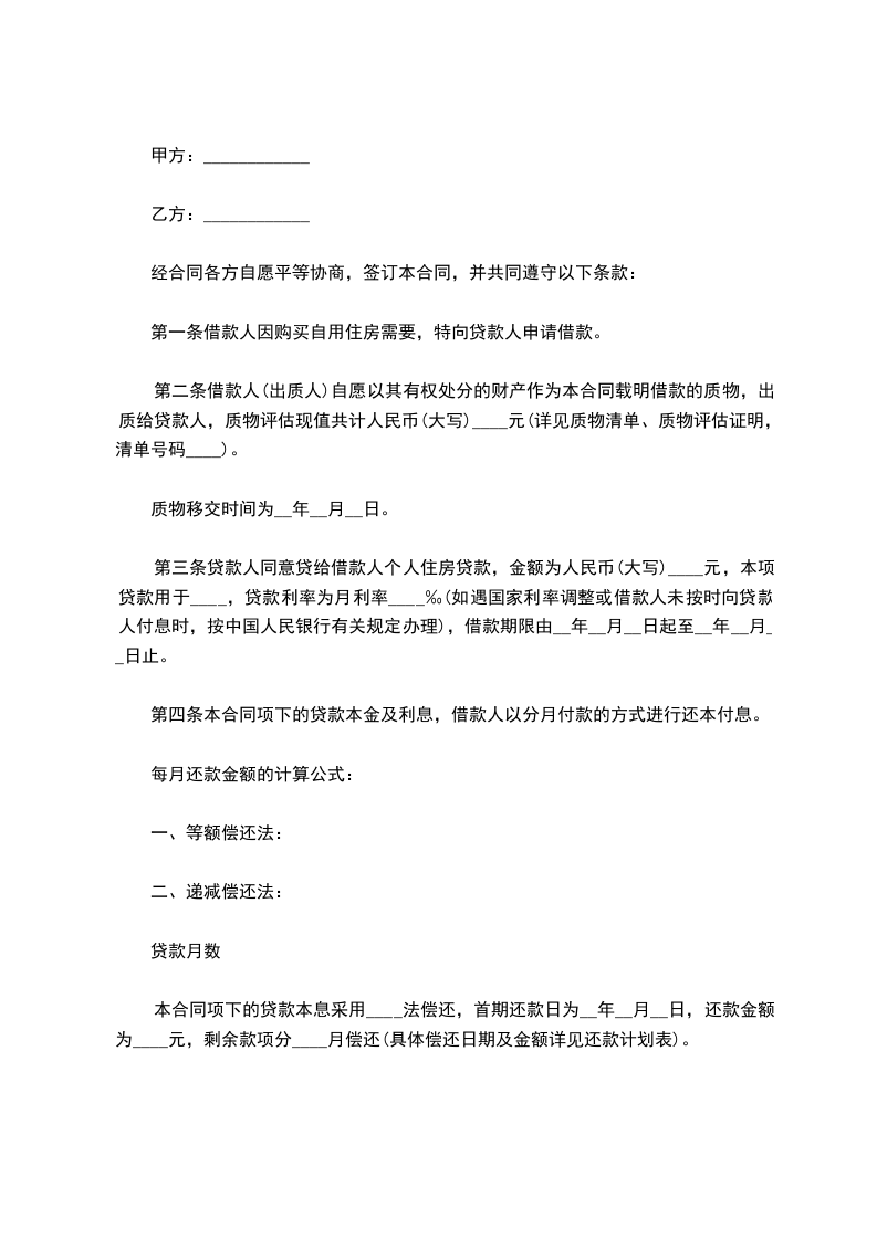 1、甲方以所以权属于自己的、位于【房产证号:湘房权文星镇字第 号;国土使用权号:( ) 】的一套房屋为自己的本次借款提供抵押担保。