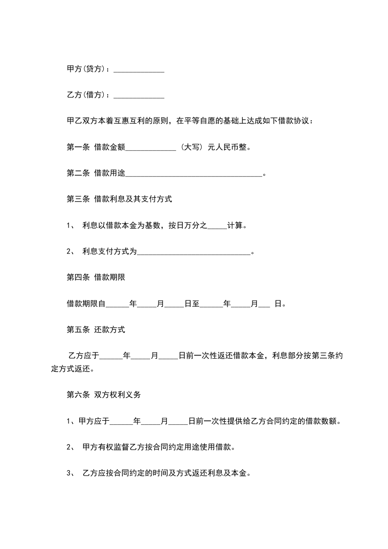 第一条 甲方因,向乙方借款人民币(¥元)。