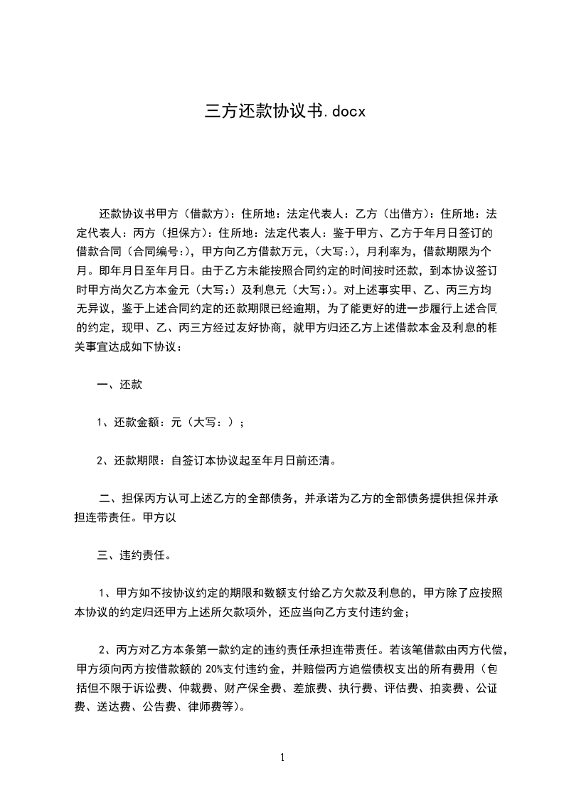 10、三方必须严格履行本协议,本协议任何一方违反本协议的任何约定义务给守约方造成损失,应赔偿守约方的损失及索赔的费用。