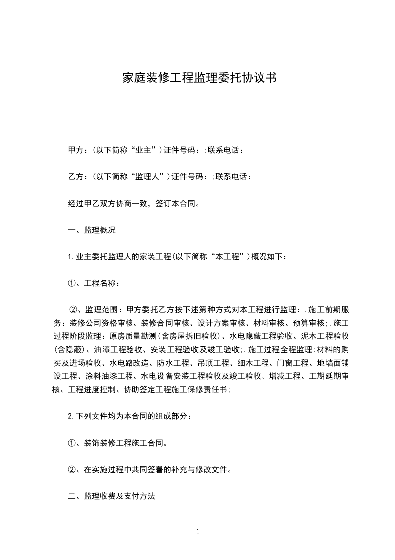 1.业主委托监理人的家装工程(以下简称“本工程”)概况如下: