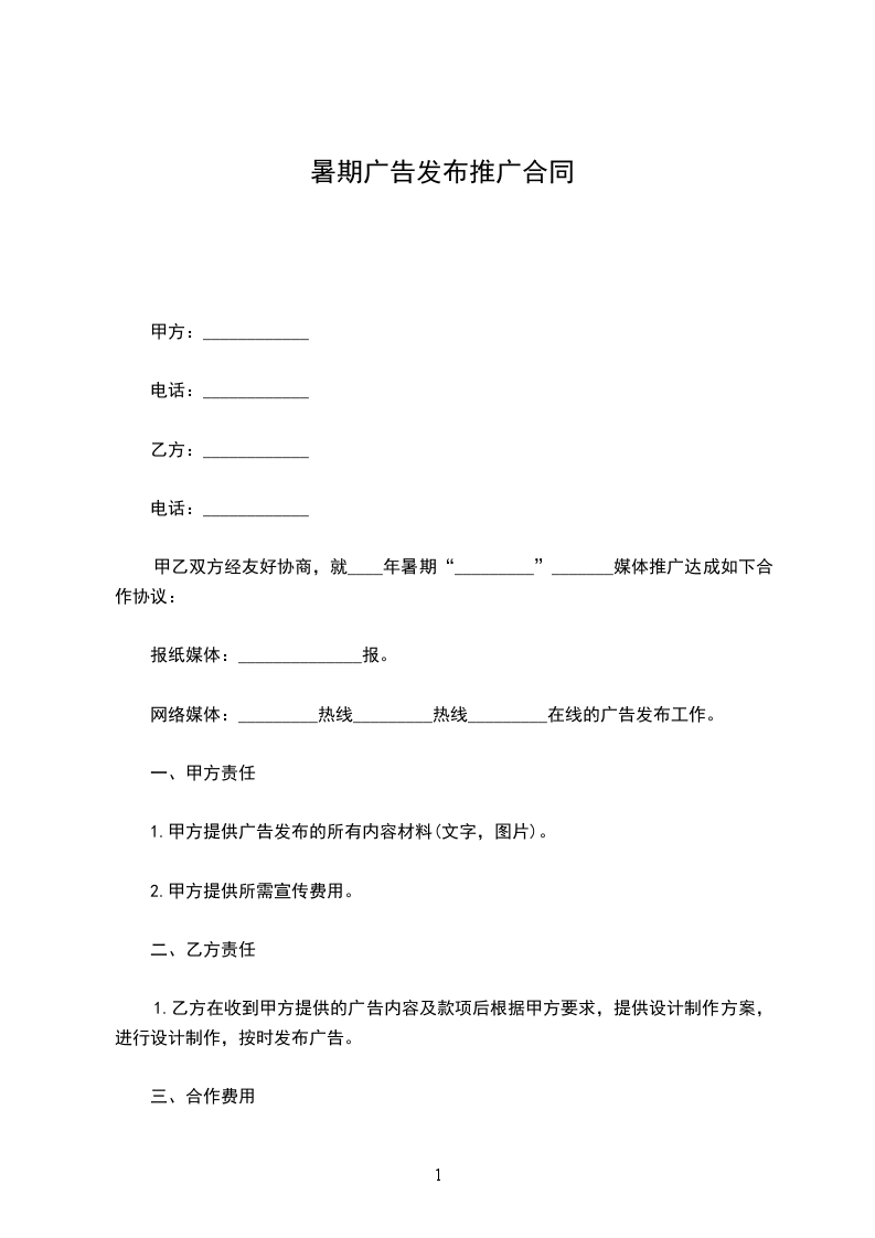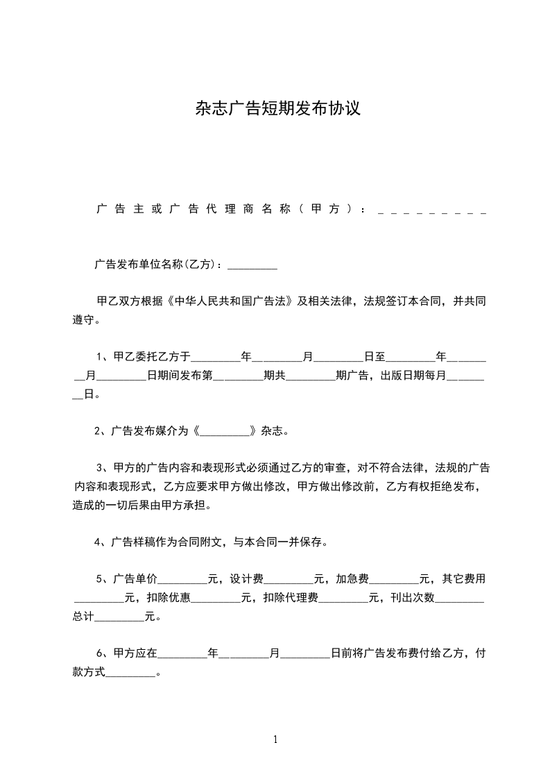 2、广告发布缴费:甲方应如约及时付给乙方有关费用。