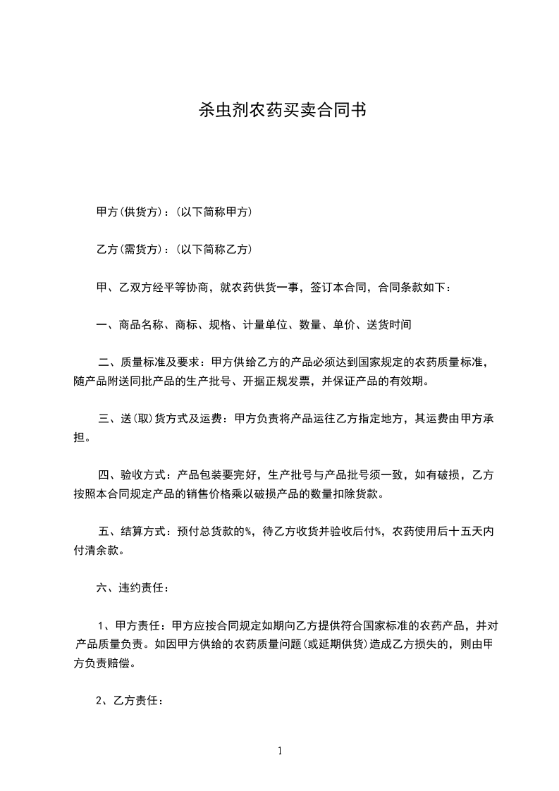 甲、乙双方经平等协商,就农药供货一事,签订本合同,合同条款如下: