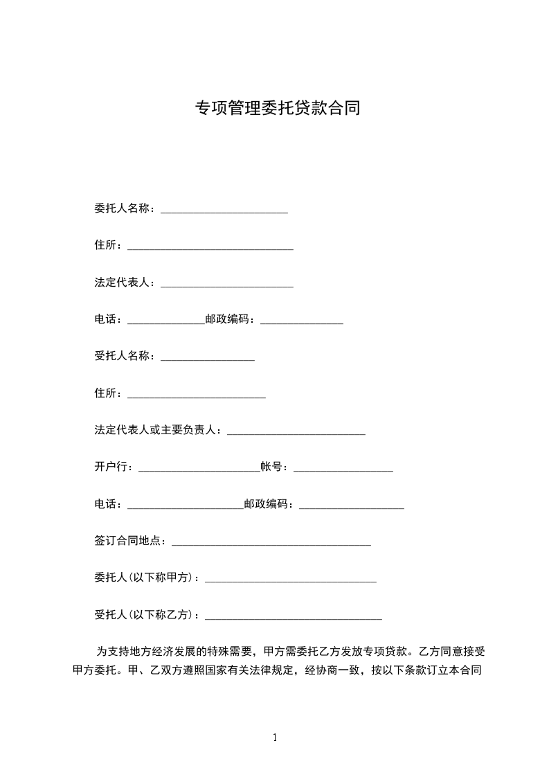 为支持地方经济发展的特殊需要,甲方需委托乙方发放 专项贷款。乙方同意接受甲方委托。甲、乙双方遵照国家有关法律规定,经协商一致,按以下条款订立本合同: