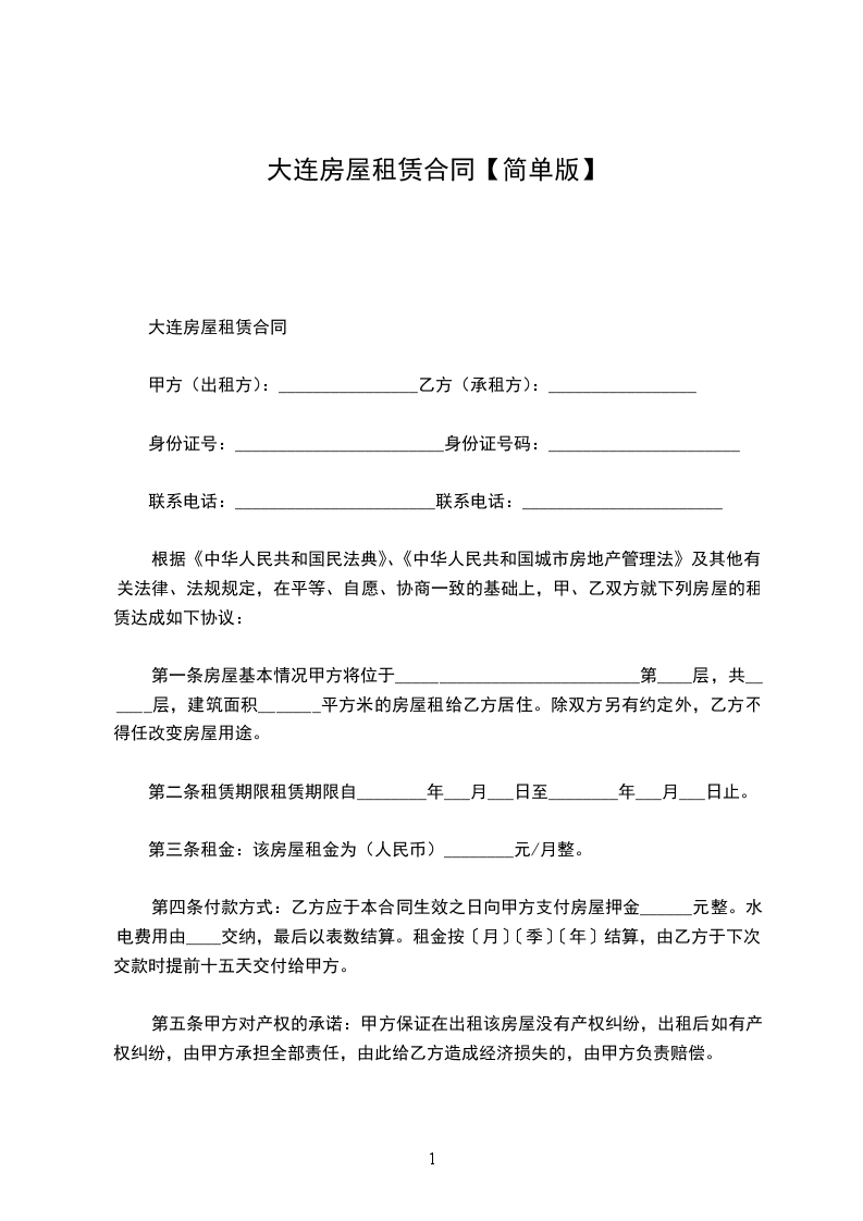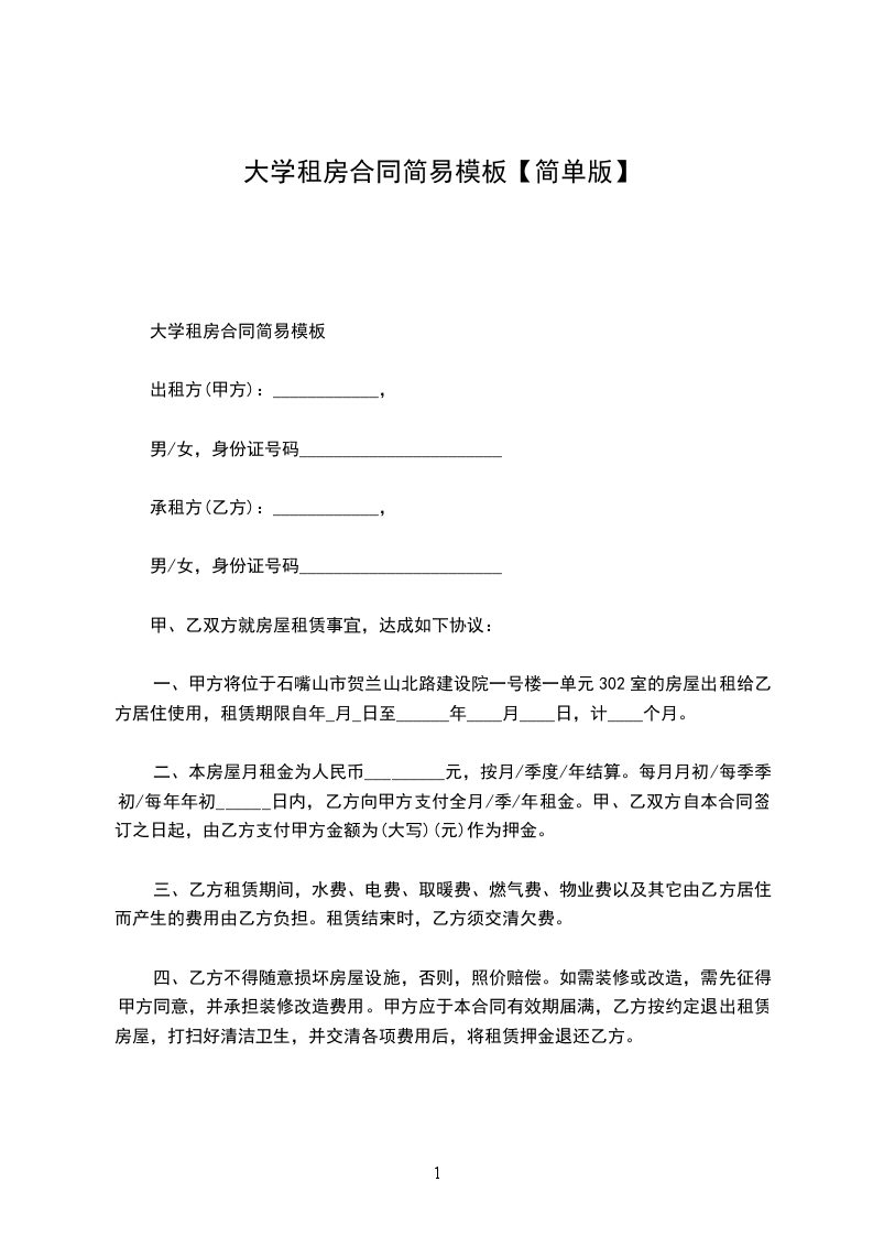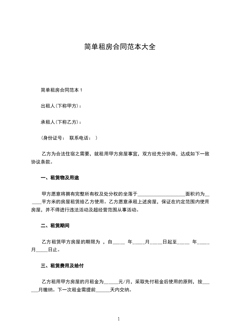 简单租房合同范本1