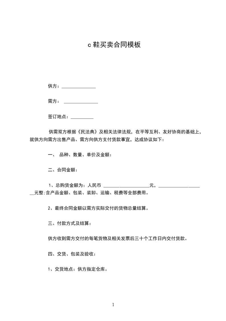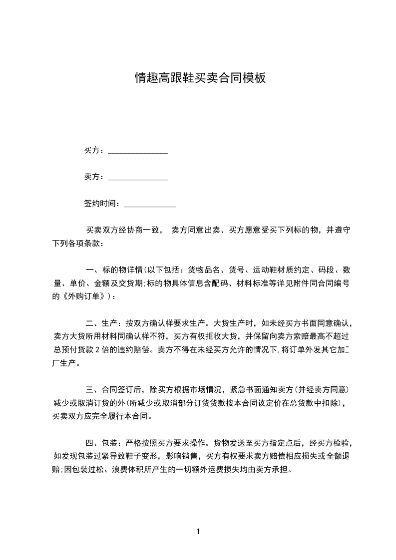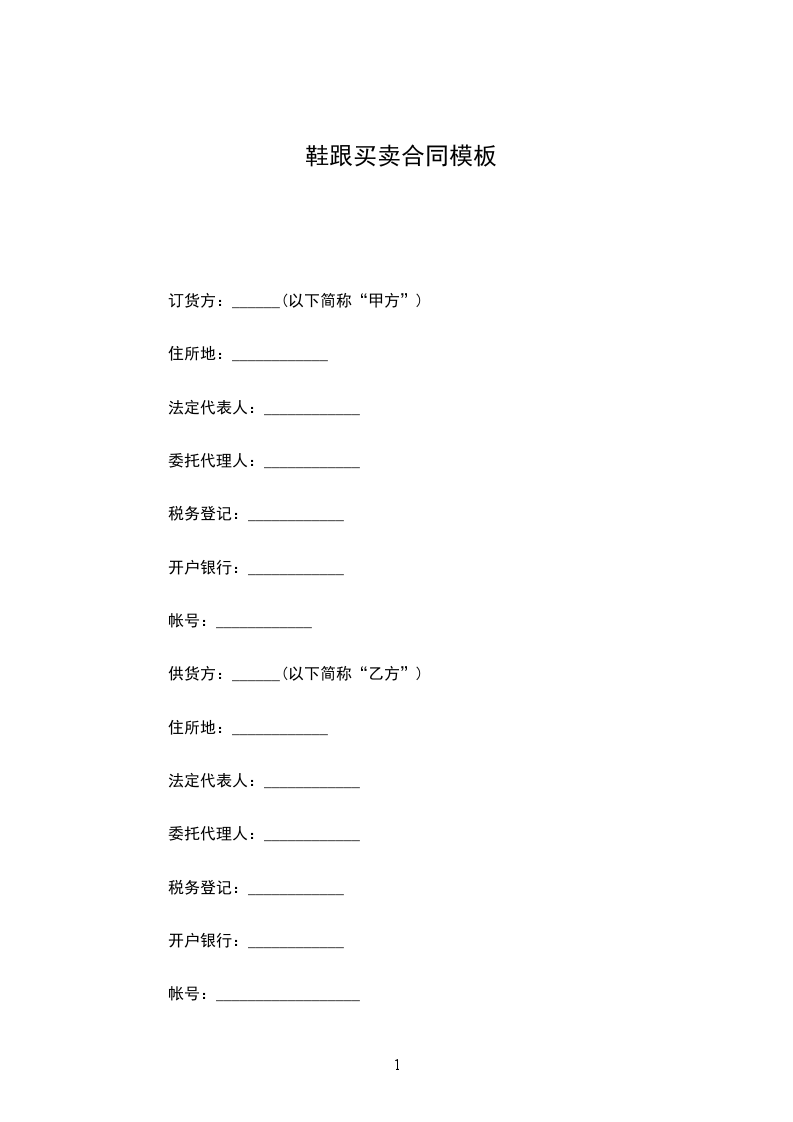 鞋子买卖合同书范文三