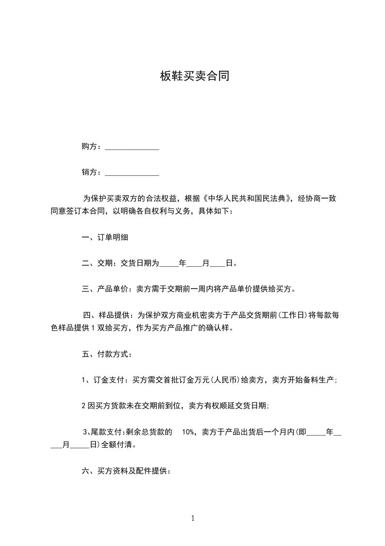 鞋子买卖合同书范文二