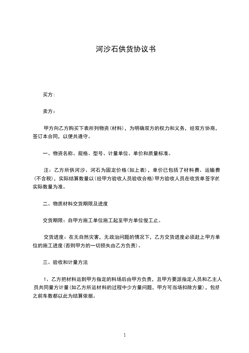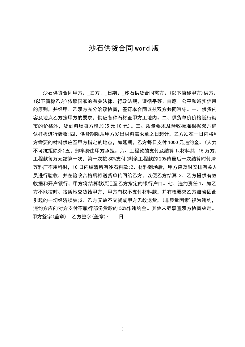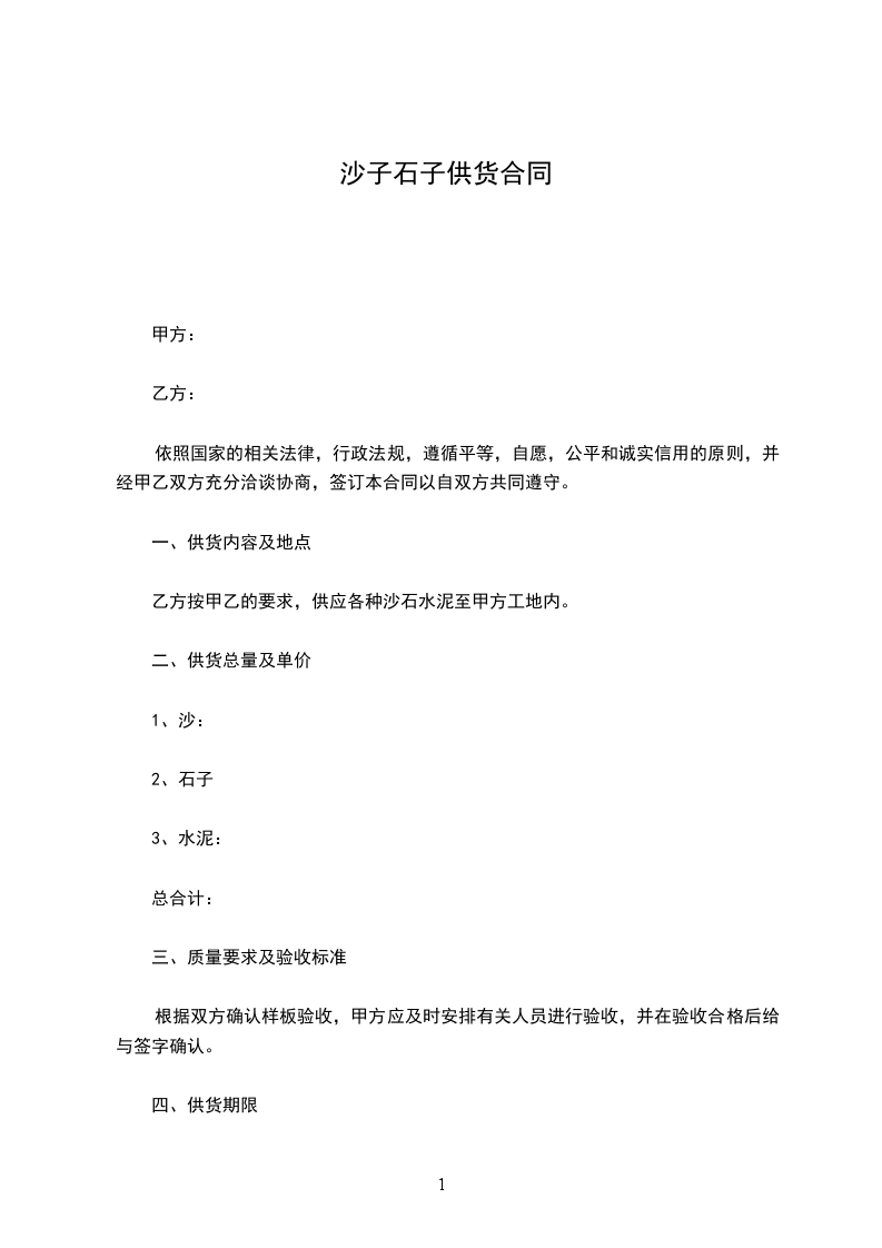 1、乙方应确保甲方生产所需沙石、水泥,如不能及时供应,所对甲方造成的一切损失由乙方全部承担,乙方在正常供应的情况下甲方不得另选或增加