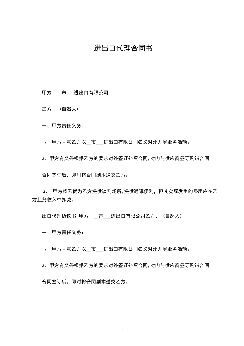 出口代理协议书 甲方:__市___进出口有限公司乙方: (自然人)