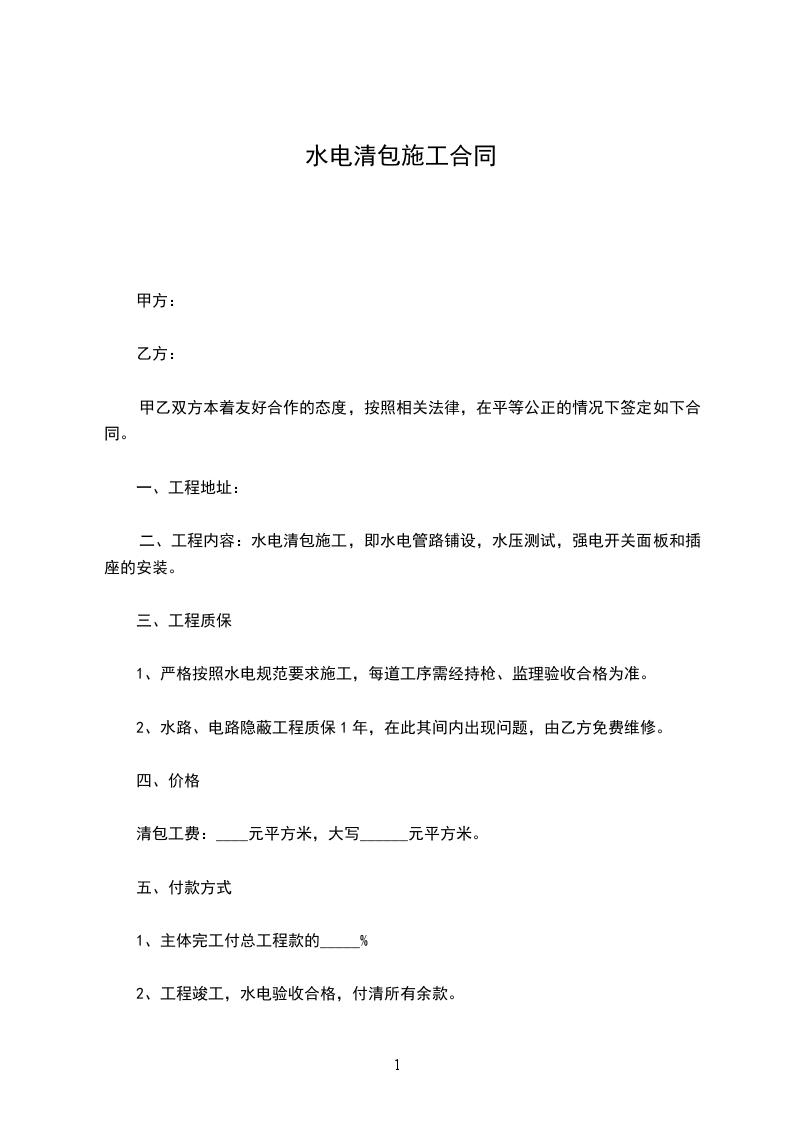 2、工程竣工,水电验收合格,付清所有余款。