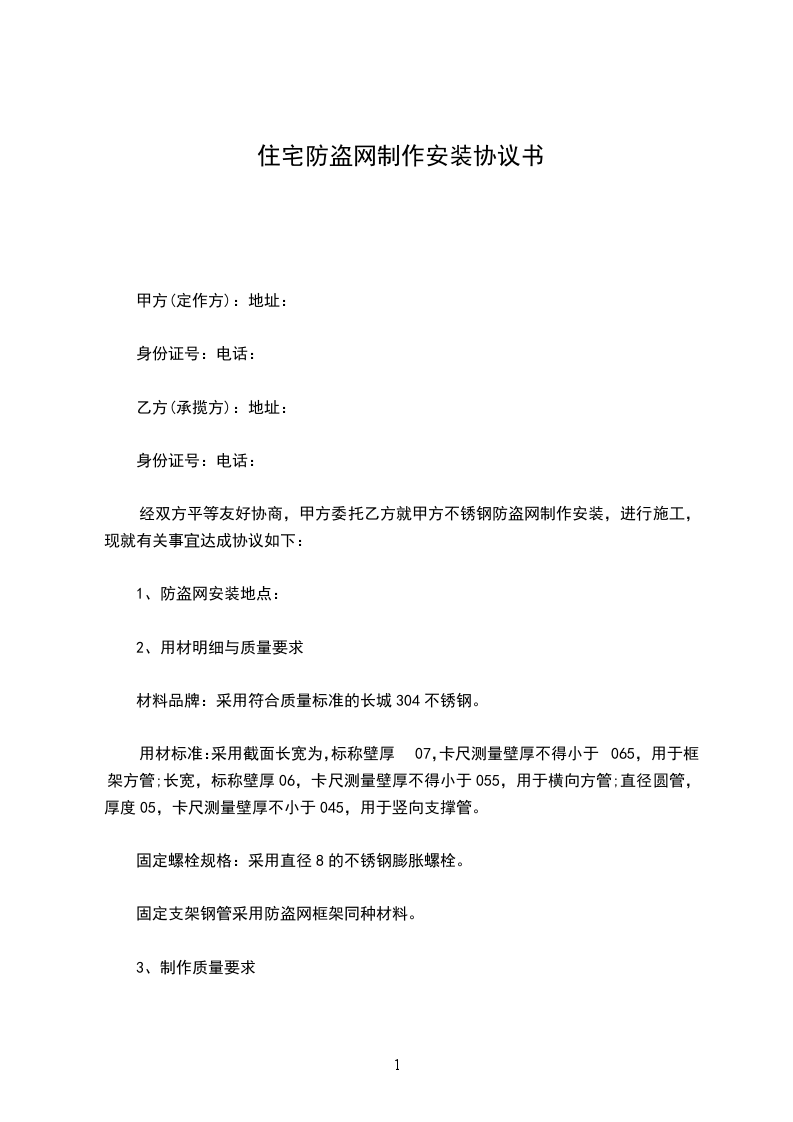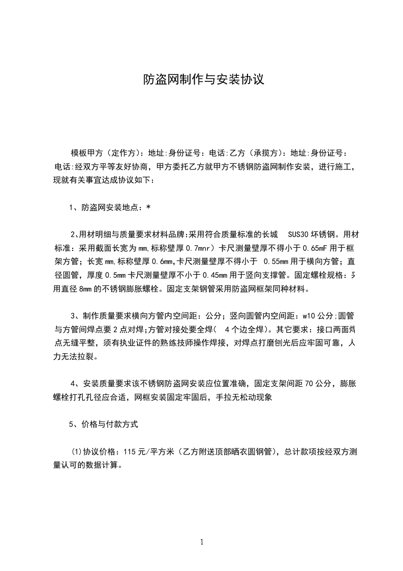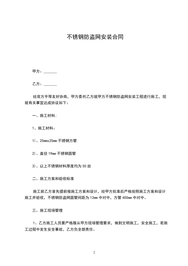 经双方平等友好协商,甲方委托乙方就甲方不锈钢防盗网制作安装,进行施工,现就有关事宜达成协议如下: