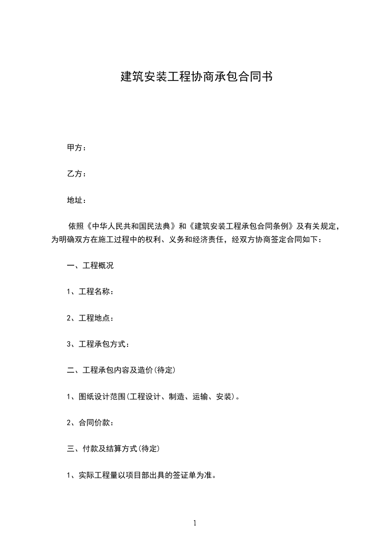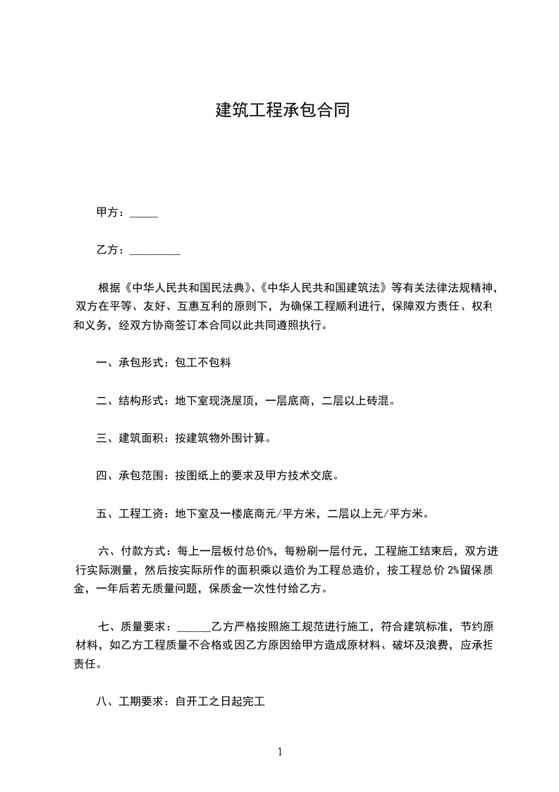 一、乙方承包工程,建筑面积平方米。