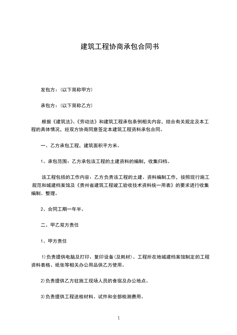 1、承包范围:乙方承包该工程的土建资料的编制,收集归档。