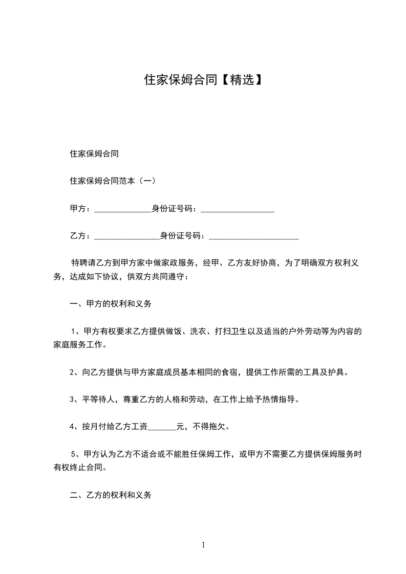 今有甲方夫妇因工作繁忙,特聘请乙方为甲方做家政宝马工作,经甲乙双方本着平等、自愿的原则友好协商,达成如下协议: