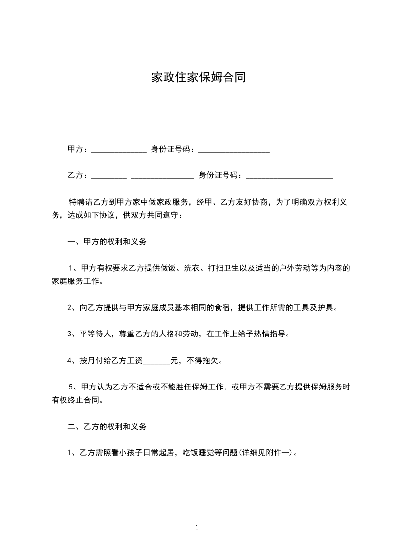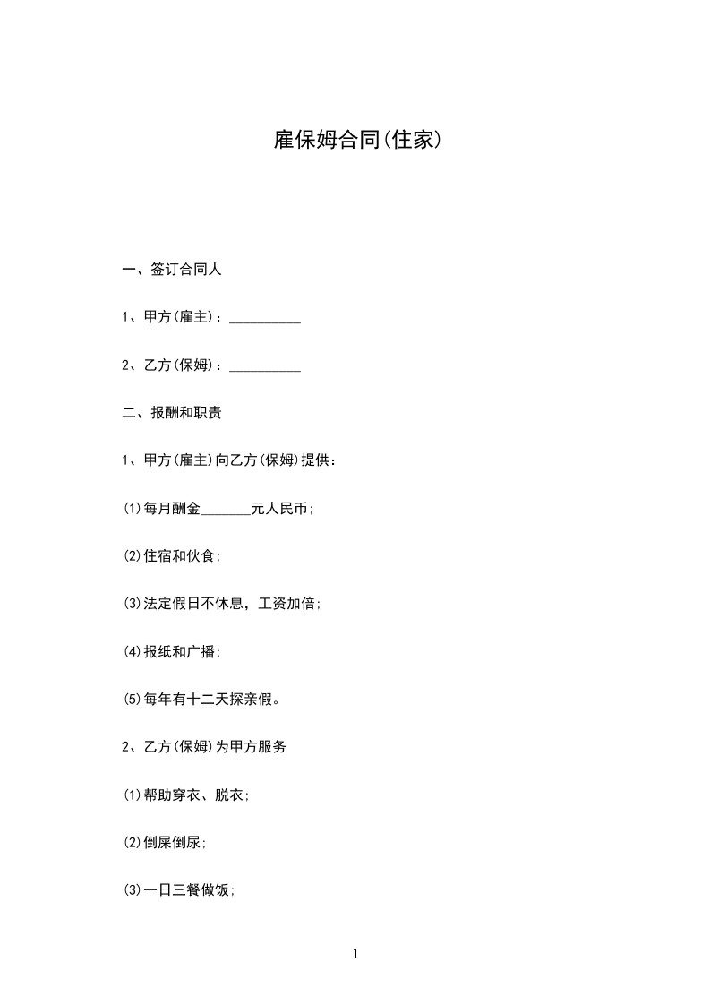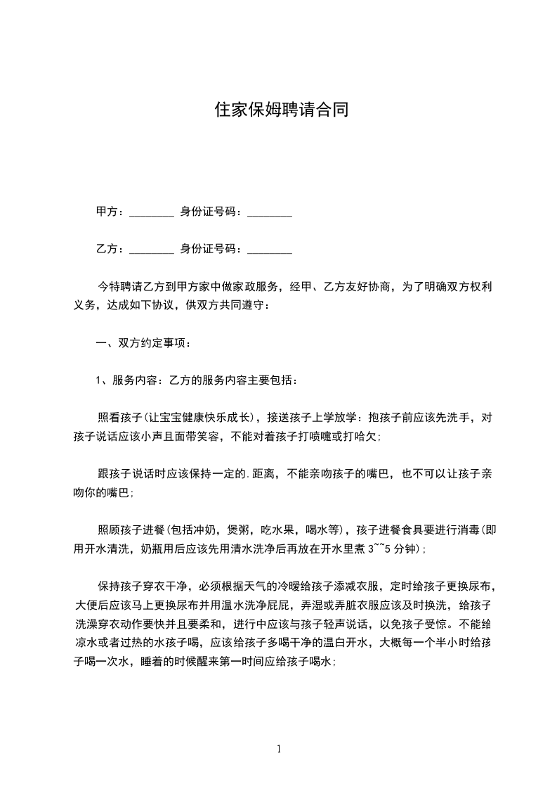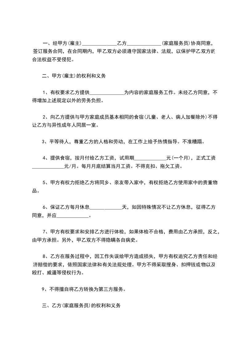 8、家务劳动:根据甲方提出的要求做饭、房屋卫生清洁、洗衣服;